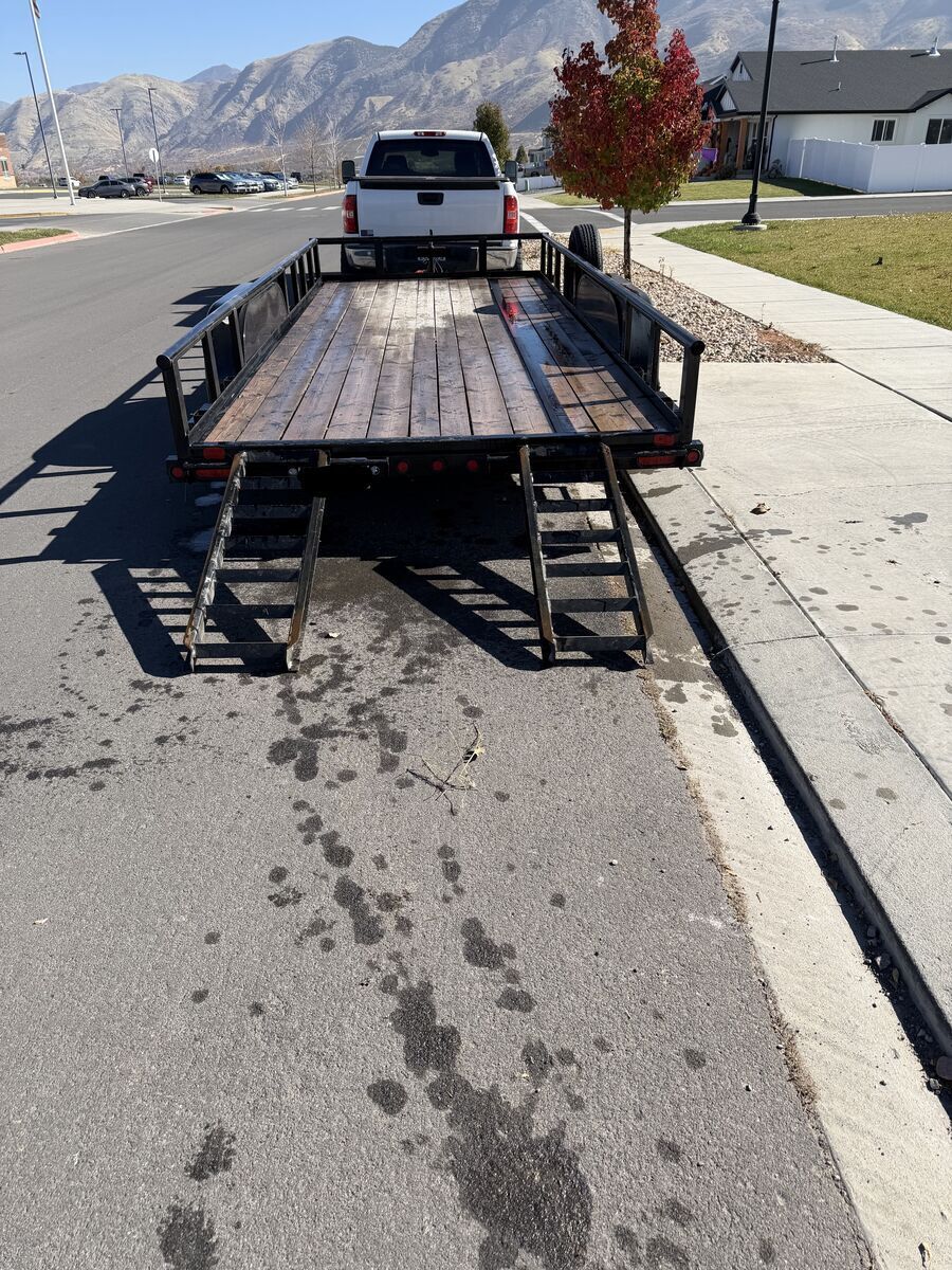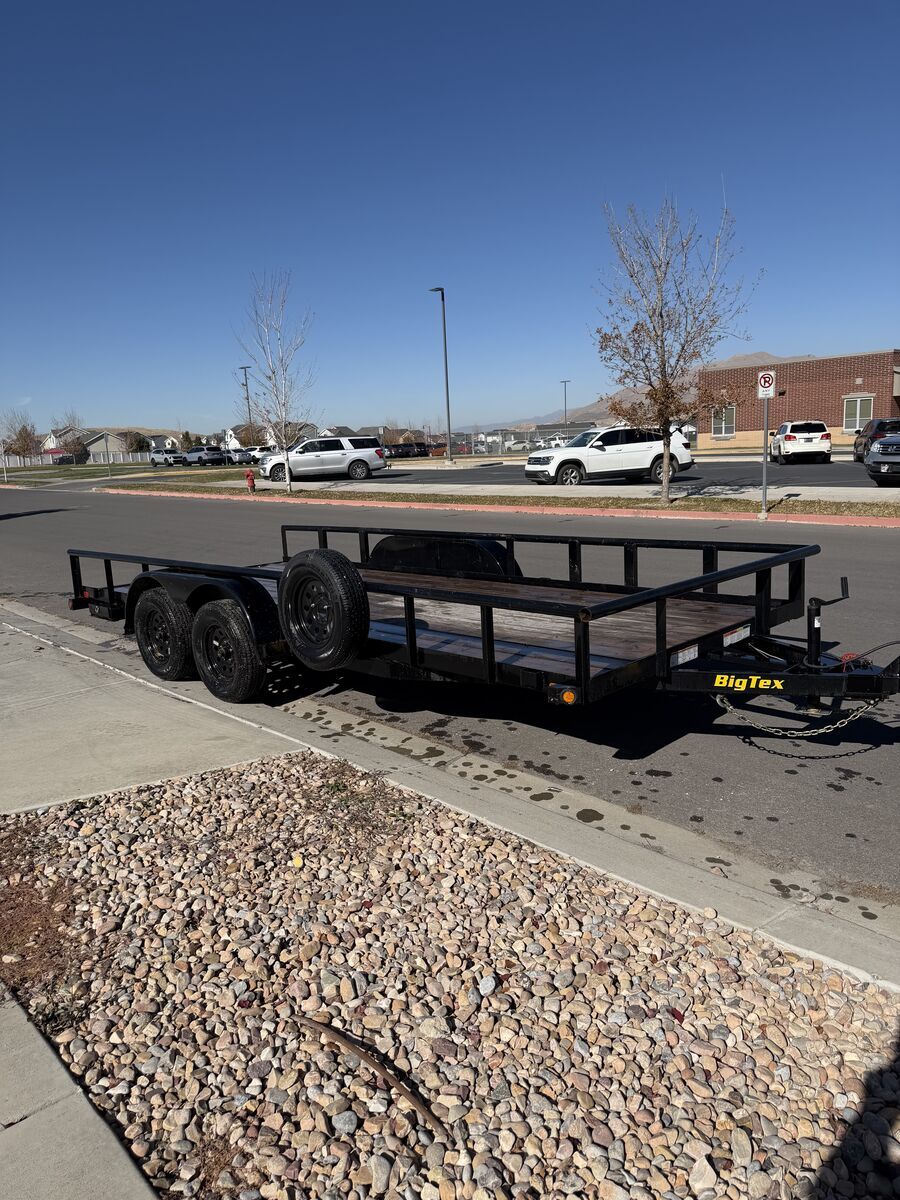 Selling our Big Tex 70PI 18-foot flatdeck trailer with one spare tire included. We bought it new in 2020 for our 4-seater RZR, which fit perfectly. After selling the RZR, we mostly used the trailer for dump runs and to help move ourselves and others. The wood deck was treated once in 2022 and has held up since. It’s in great condition, we just don’t have a need for it anymore.