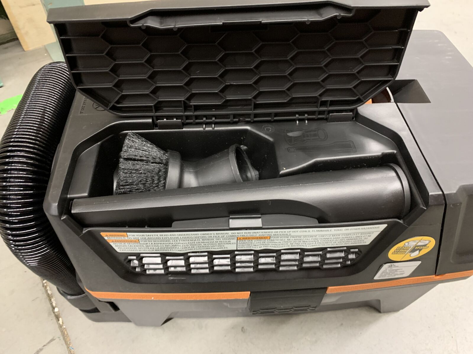 Highlights - RIDGID Cordless 3 gallon NXT wet/dry vac includes a 18V 6.0 Ah MAX Output Lithium-Ion Battery, Fine Dust Filter (VF3500), Crevice Tool, Dusting Brush, and 6 ft. collapsible, rubberized Hose