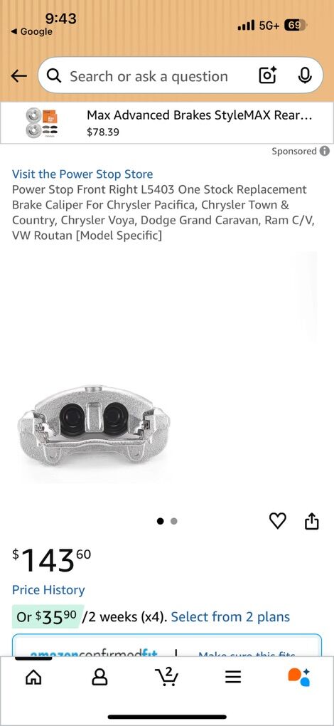 Power Stop Front Right L5403 One Stock Replacement Brake Caliper For Chrysler Pacifica, Chrysler Town & Country, Chrysler Voya, Dodge Grand Caravan, Ram C/V, VW Routan [Model Specific]