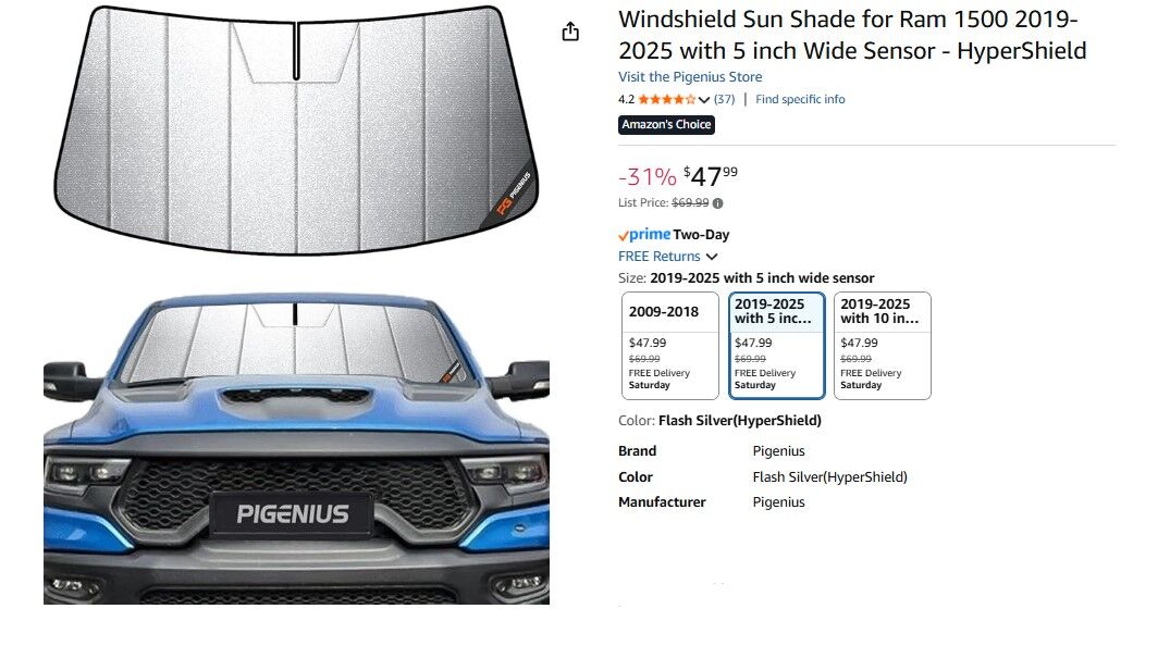 ApplePayWindshield Sun Shade for Ram 1500 2019-2025 with 5 inch Wide Sensor - HyperShield