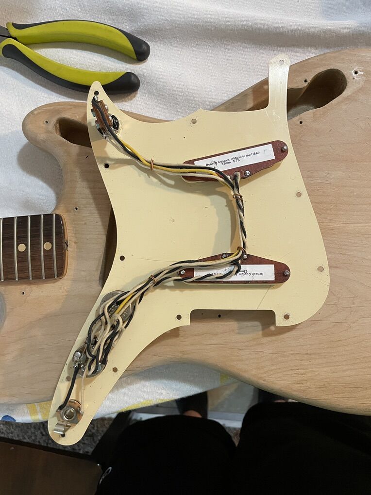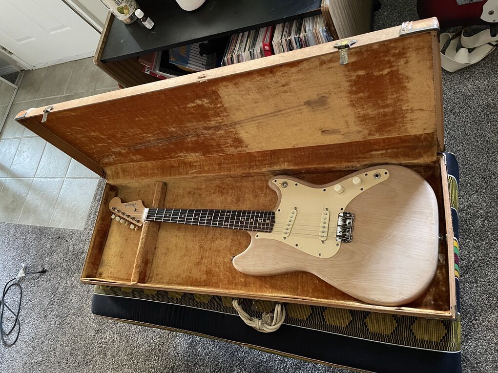 The guitar currently has Handwound Benson Stratocaster pickups. They’re fantastic vintage replicas. The guitar also comes with the original case which is a valuable commodity on its own.