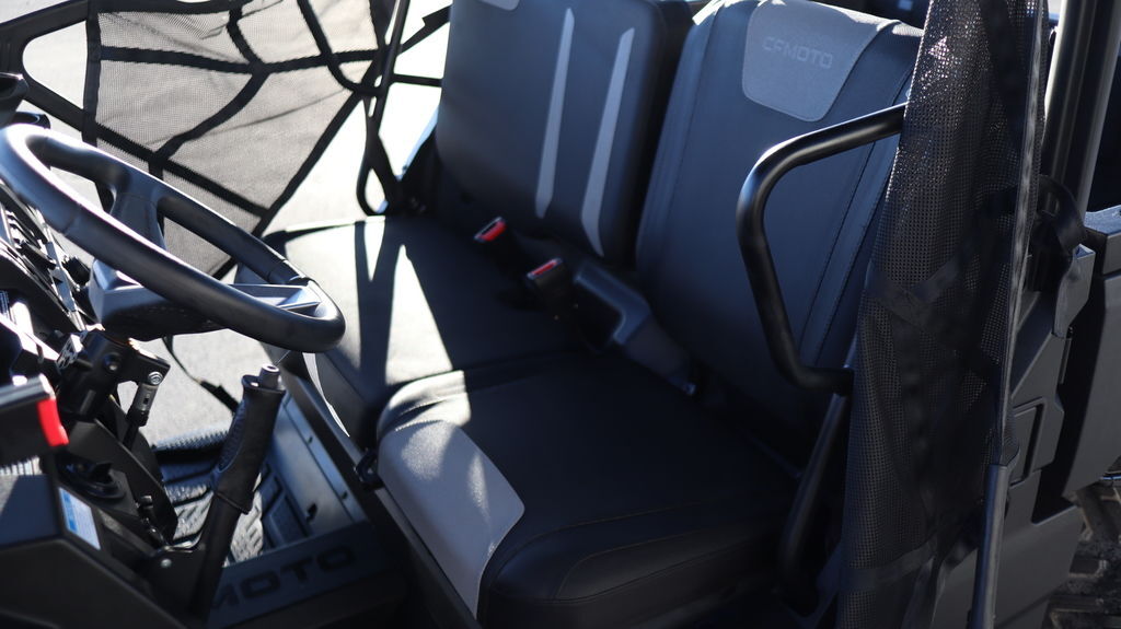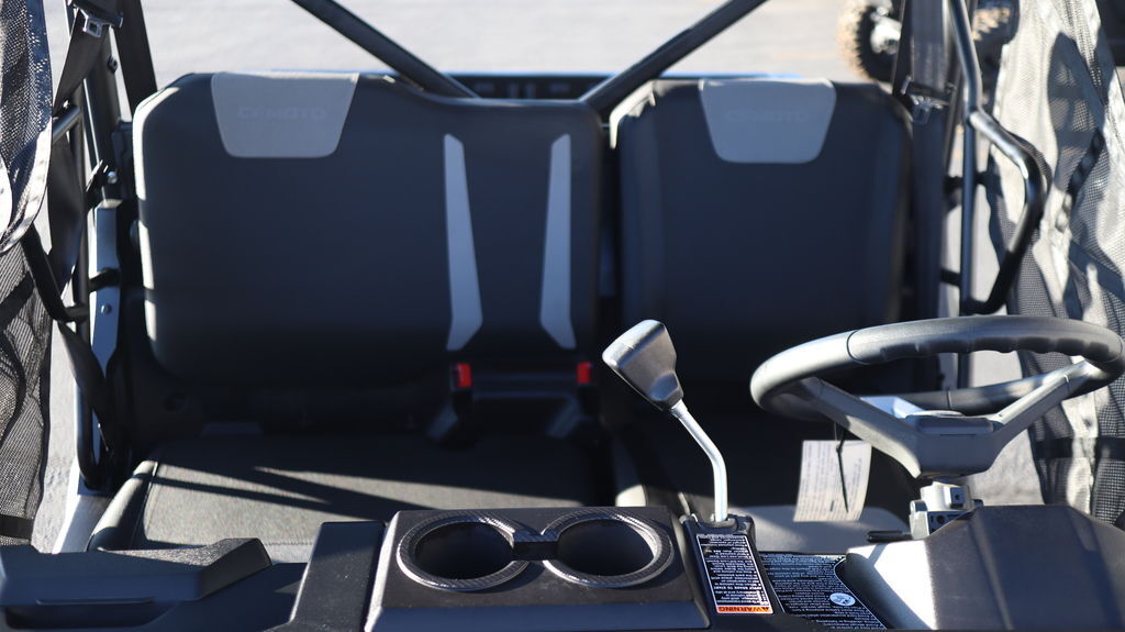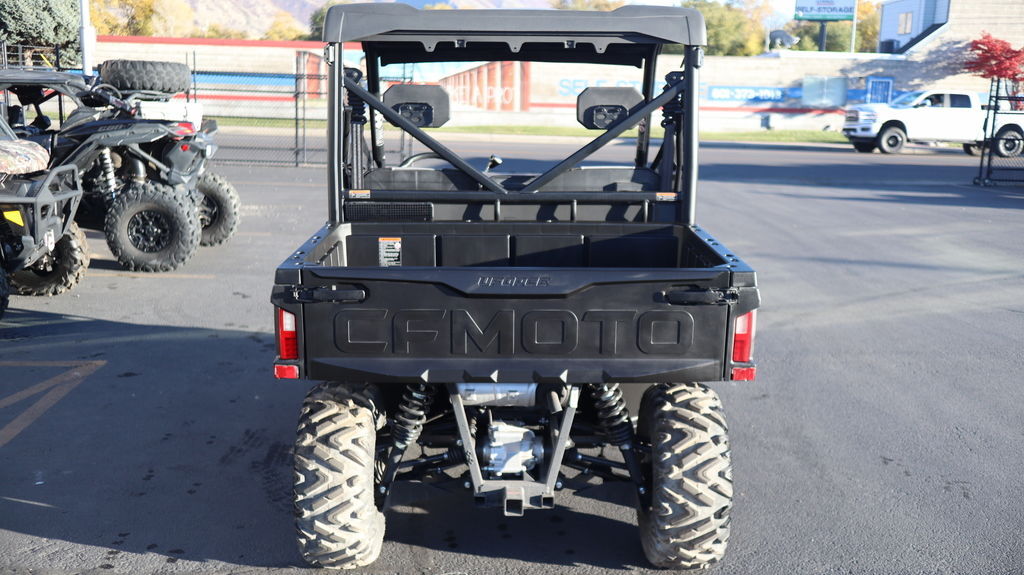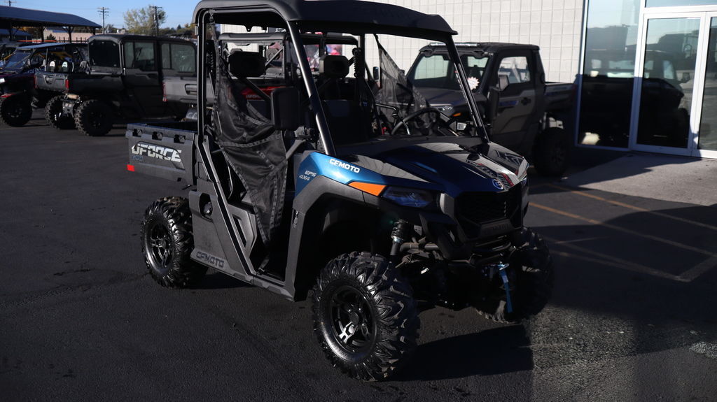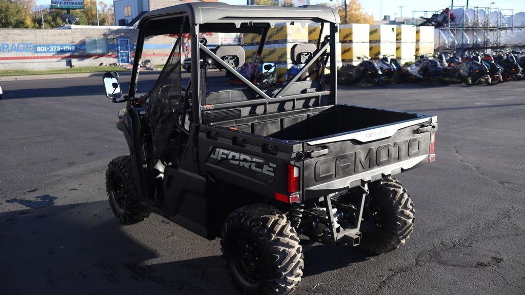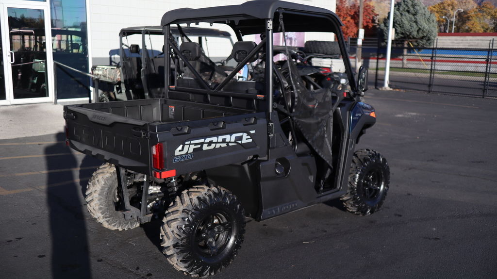 Engine & Drivetrain It’s powered by a 580?cc single-cylinder, liquid-cooled SOHC 4-valve engine that develops about 36–40?hp and 34?lb-ft of torque, managed by Bosch EFI. It uses a CVTech automatic CVT (Park/Reverse/Neutral/High/Low) and features selectable 2WD/4WD plus a locking front differential—ideal for varied terrain. Dimensions & Capacity The UForce?600 measures roughly 111? long, 58? wide, 76–77? tall, with a 76? wheelbase. Curb weight is about 1,356?lb, with 10.5? ground clearance and a turning radius close to 30 feet. It holds 9.25 gallons of fuel, tows up to 3,500?lb, and supports 600?lb in the rear cargo bed. Suspension & Wheels It’s equipped with independent gull-wing A-arm front suspension (9? travel) and double A-arm rear (10? travel), both with preload-adjustable, oil-damped shocks. Both ends ride on 12? cast aluminum wheels with 26×8 (front)/26×10 (rear) tires. Brakes & Handling Hydraulic disc brakes operate on all four wheels and include a parking brake. Steering is nimble with a turning radius of ~29.9 feet, and EPS helps with maneuverability. Equipment & Utility Standard features include bright RideVision LED lighting, a 2? receiver hitch, a 3,500-lb winch with roller fairlead, nitrogen-assisted dump bed with divider slots, 12?V and USB outlets, mirrors, roof, side nets, and an electronic throttle with work/normal modes. Digital instrumentation provides essential readouts. Comfort & Maneuverability The compact chassis offers agility in tight trails or work environments. A tough hardtop roof and optional doors add protection from the elements.
