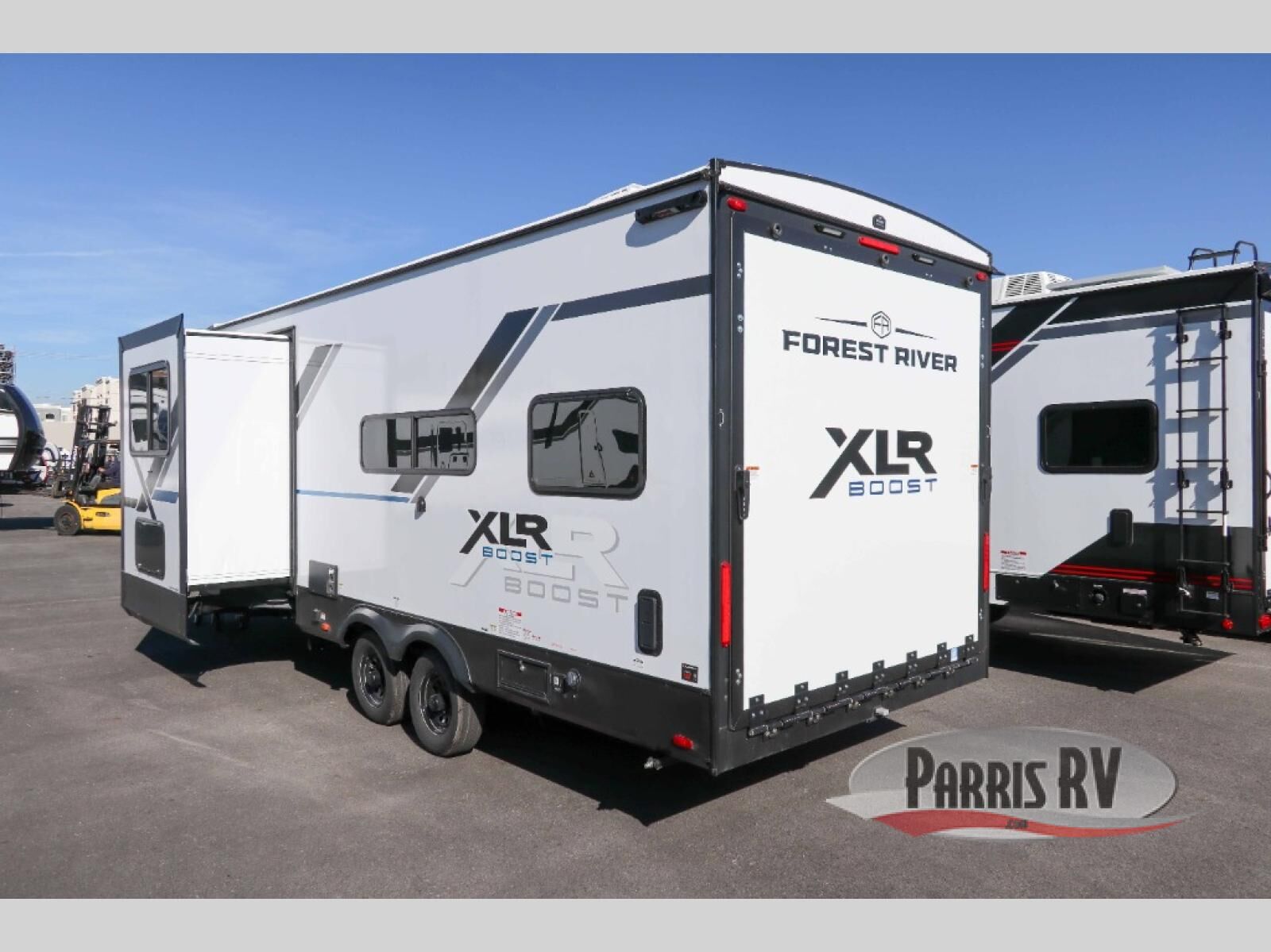 Boost into action camping with one of these Forest River XLR Boost X fifth wheel toy haulers or travel trailer toy haulers! The wide body design not only provides ample interior space, but also packs in all of the luxurious features to make your trips great. There is Alumifoil roof insulation with fiberglass batten insulation along with fiberglass flooring insulation, and laminated 1.5" walls with high density foam insulation construction. The Convenience Package includes a tankless water heater, back up camera prep, a 1.5 convection microwave, and more features to make each trip accommodating. You will love the decorative glass cabinet kitchen doors included in the Xplore Package, as well as a residential style kitchen faucet, a large bath vent fan, and m****anual Euro garage bed that will withstand your many adventures. The X Package includes a generator prep for off-grid capabilities, and there is an external fuel cell with a pump that will keep your toys ready to go!