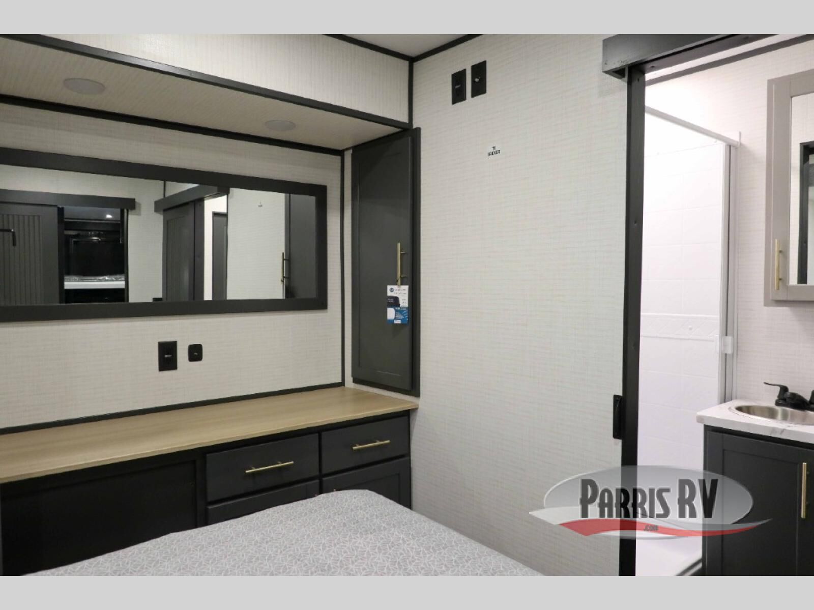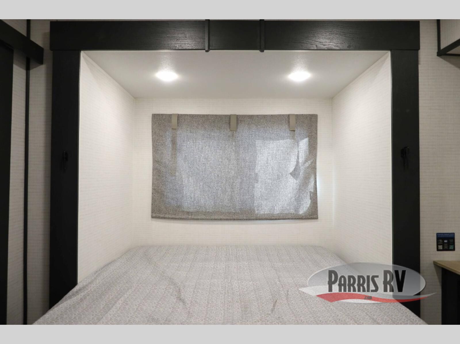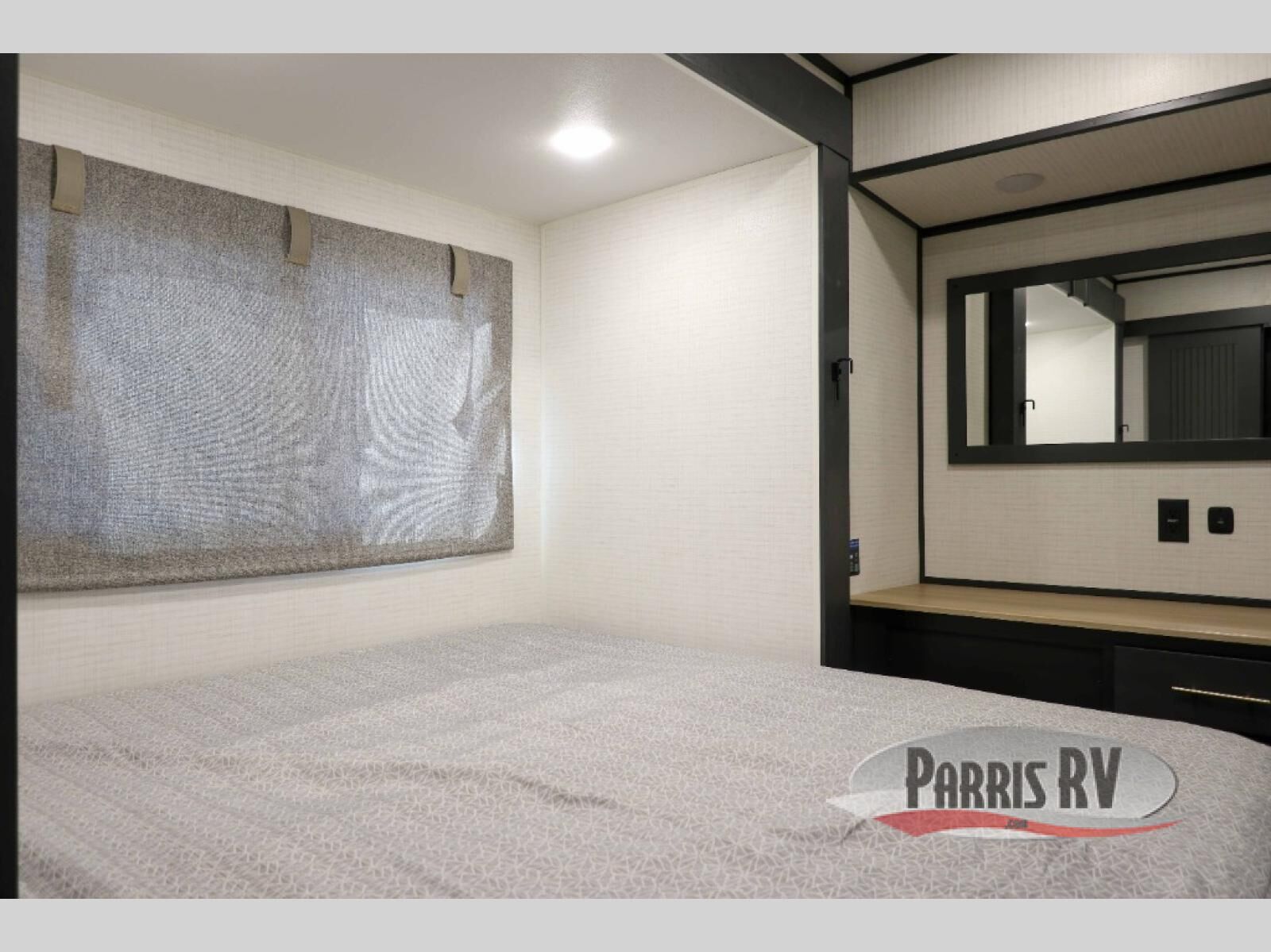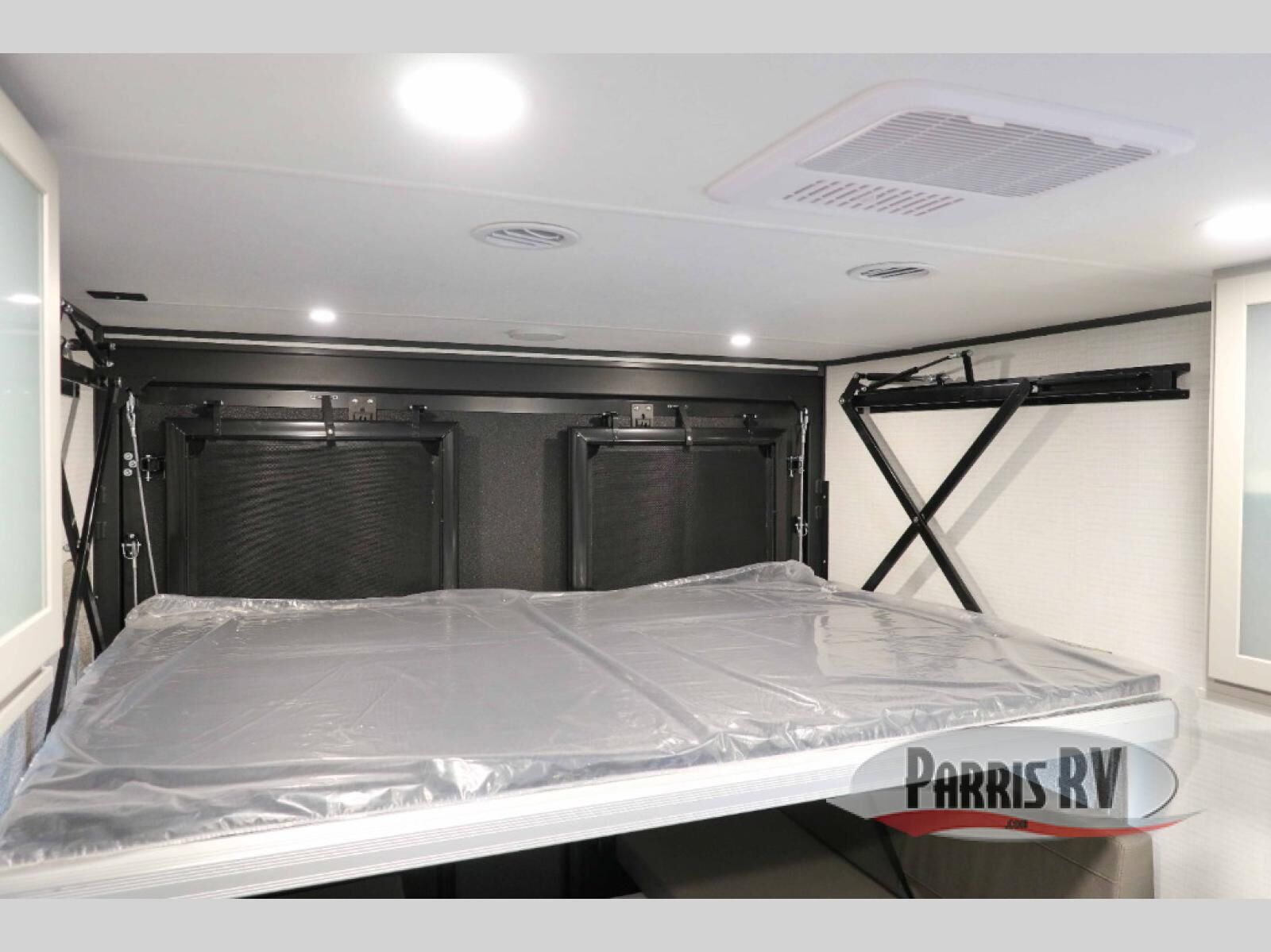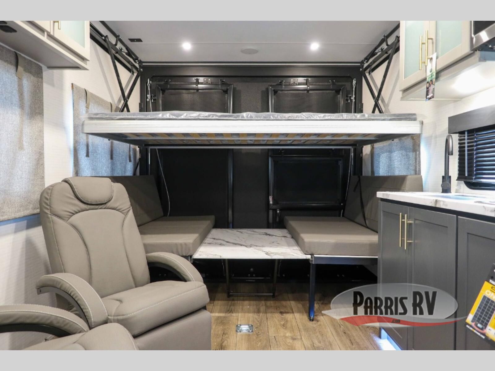 Bring your favorite off-road toys with you in this toy hauler to your favorite camping spots! The 14' garage includes opposing sofa sleepers with a removable dinette table to create a queen bed sleeping area, plus a Euro bed above for your guests to sleep on. The front of this toy hauler is shared with the master bedroom and dual entry bath you are sure to love, plus there is a dresser with a mirror to get ready each day. The exterior has many features you will love like the docking station, 15' power awning, and the outside storage areas!
