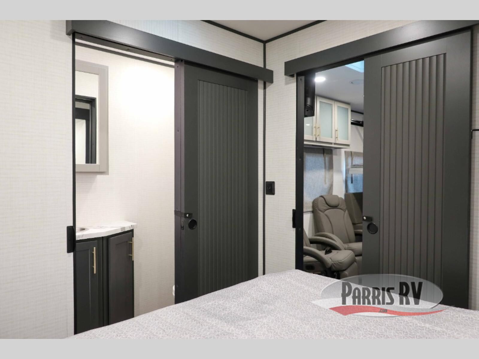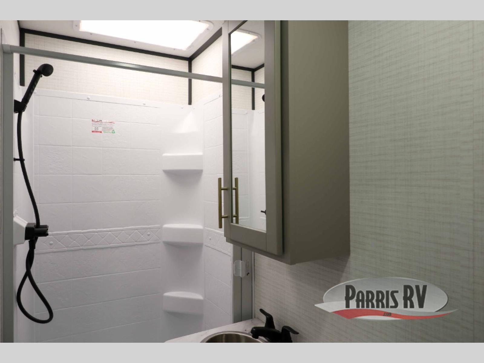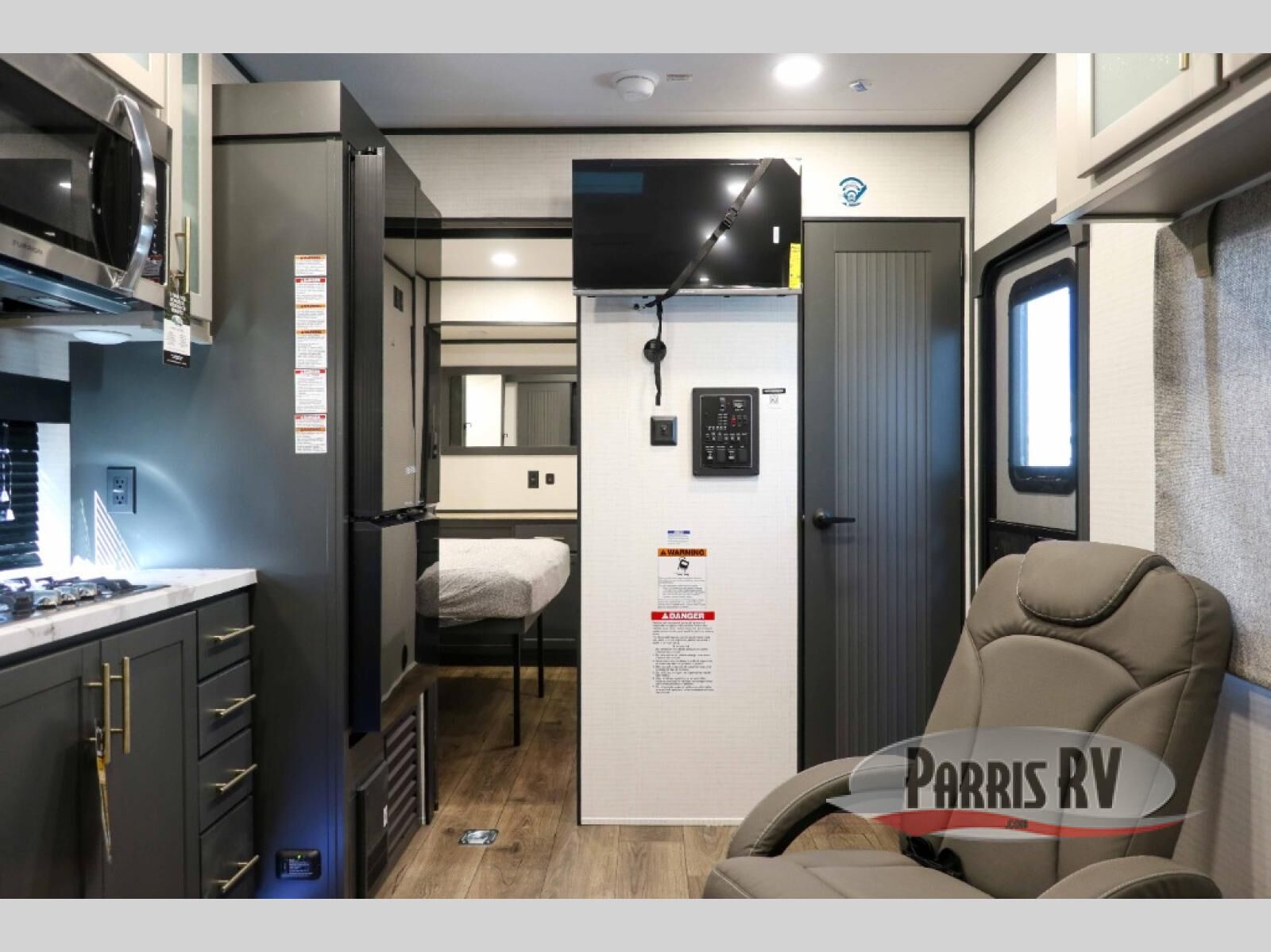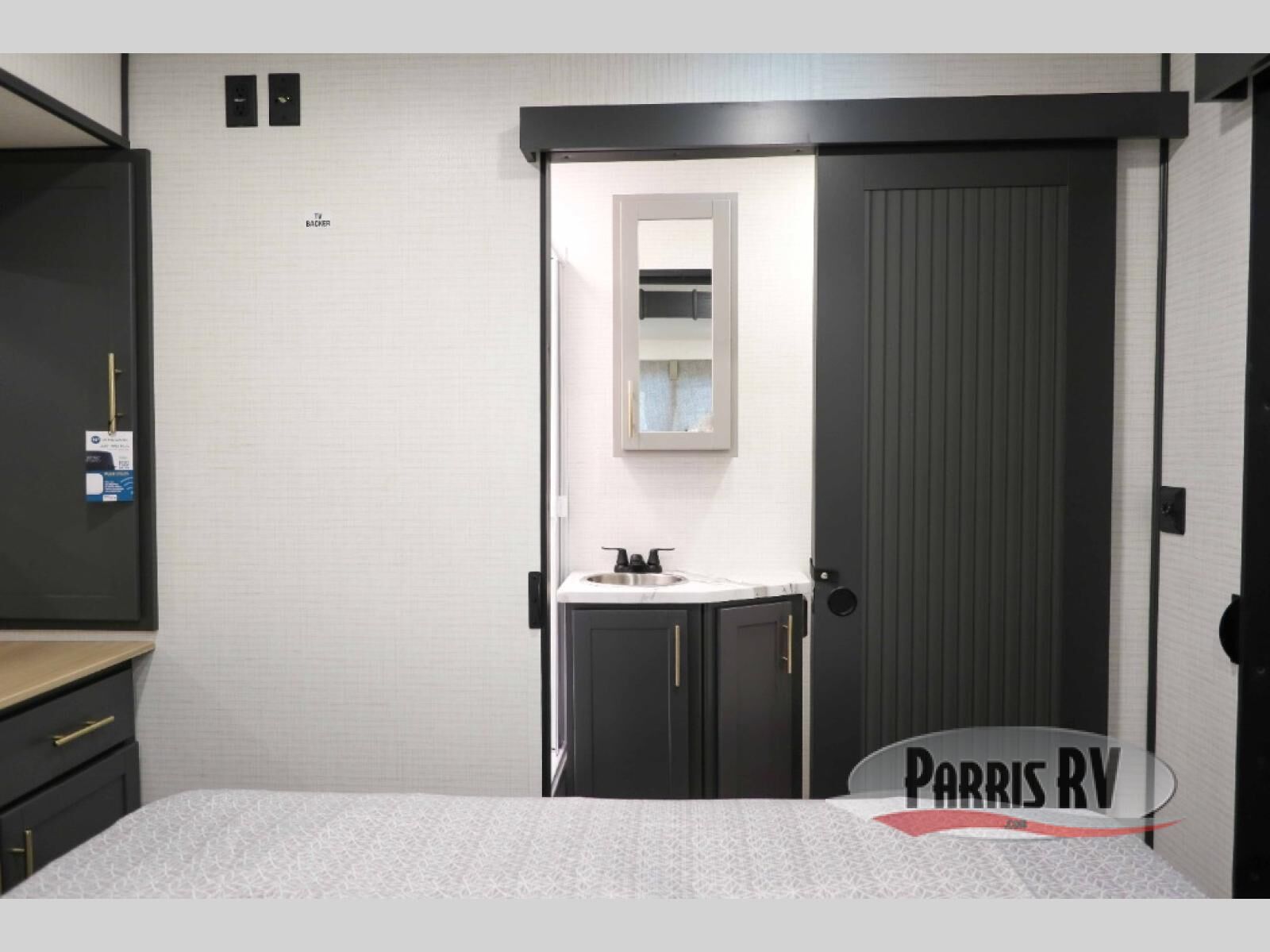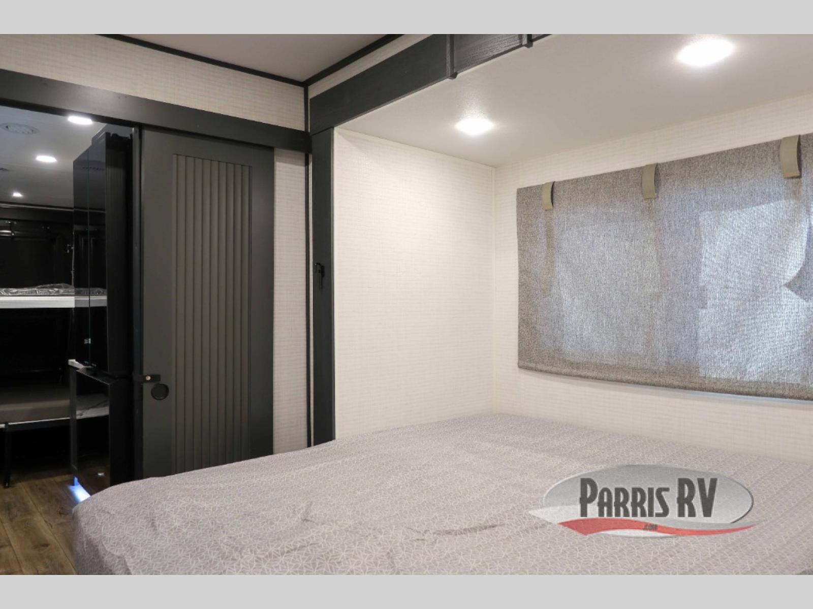Bring your favorite off-road toys with you in this toy hauler to your favorite camping spots! The 14' garage includes opposing sofa sleepers with a removable dinette table to create a queen bed sleeping area, plus a Euro bed above for your guests to sleep on. The front of this toy hauler is shared with the master bedroom and dual entry bath you are sure to love, plus there is a dresser with a mirror to get ready each day. The exterior has many features you will love like the docking station, 15' power awning, and the outside storage areas!