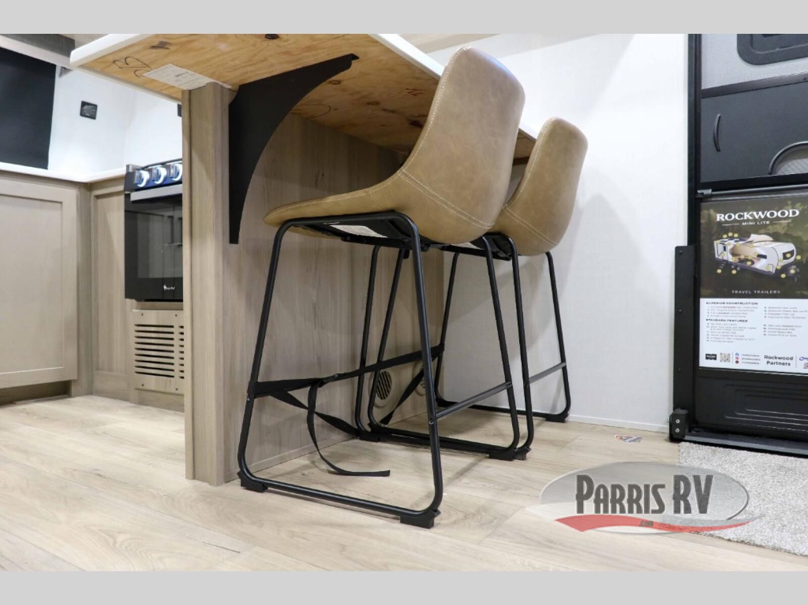 Each Rockwood Mini Lite travel trailer by Forest River is constructed with a fully laminated one-piece walkable roof, sleek frameless windows, and a six-sided full aluminum frame for strength and durability. The 12V thermostatically controlled heated tanks, plus radiant foil in the underbelly will allow you to camp well into the colder months, and the 200W roof solar panel will be perfect for a little off-gridding. Each model includes solid surface kitchen countertops, hidden hinge cabinet doors, roller shades, plus many more interior features. Having an AIR 360+ omnidirectional antenna with WiFi prep on board gives you the option to get some work done if it's needed, and the power tongue jack provides hassle-free set up, so you can enjoy more time relaxing!