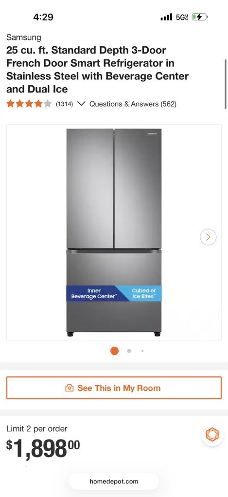 ZelleScratch & Dent Beverage Center AutoFill water pitcher Dual Ice Maker (cubed and ice bites) Dimensions: 32.18 (W) x 33.31 (D with doors) x 70 (H with hinge)