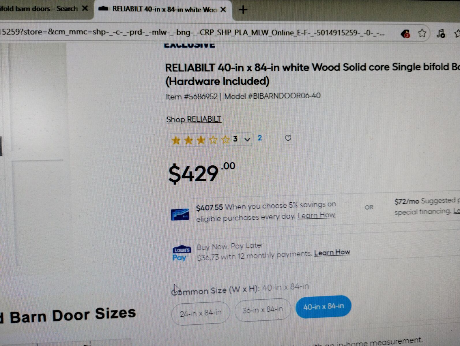 call50% off BI FOLD SIZE S /2-30X80/-2-36X84-/2-40X84 /-1/25X84 AND 1-30X84