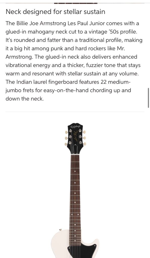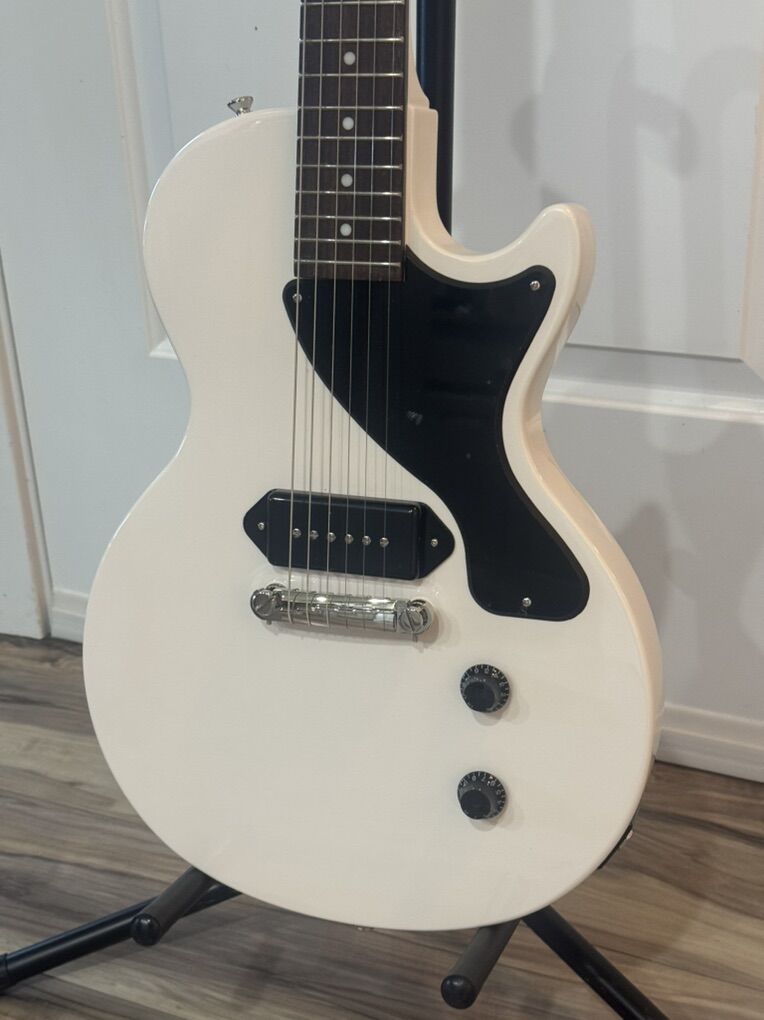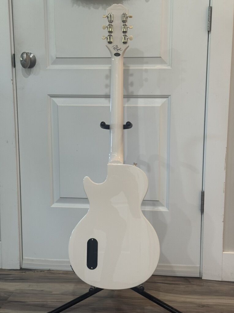 VenmoLike new Billy Joe Armstrong (Green Day) signature white Les Paul Junior made with Epiphone Pro P90 pickup with CTS pot and glued in mahogany neck into slab mahogany body. With carry soft case. Hardly played. Specifications are in the pictures.