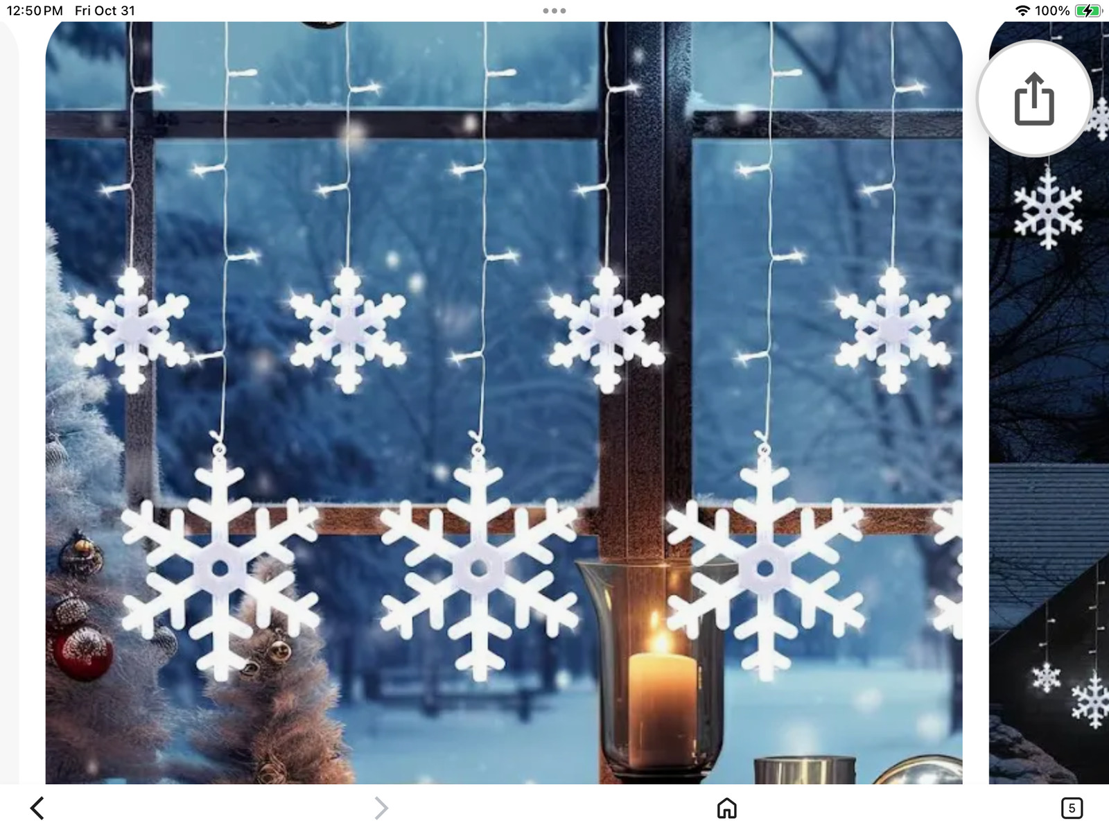 'Brightown' LED snowflake strung lights. 6 big flakes and 6 small. (The second picture shows how they look when hung. Not my picture)