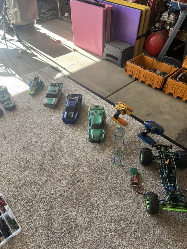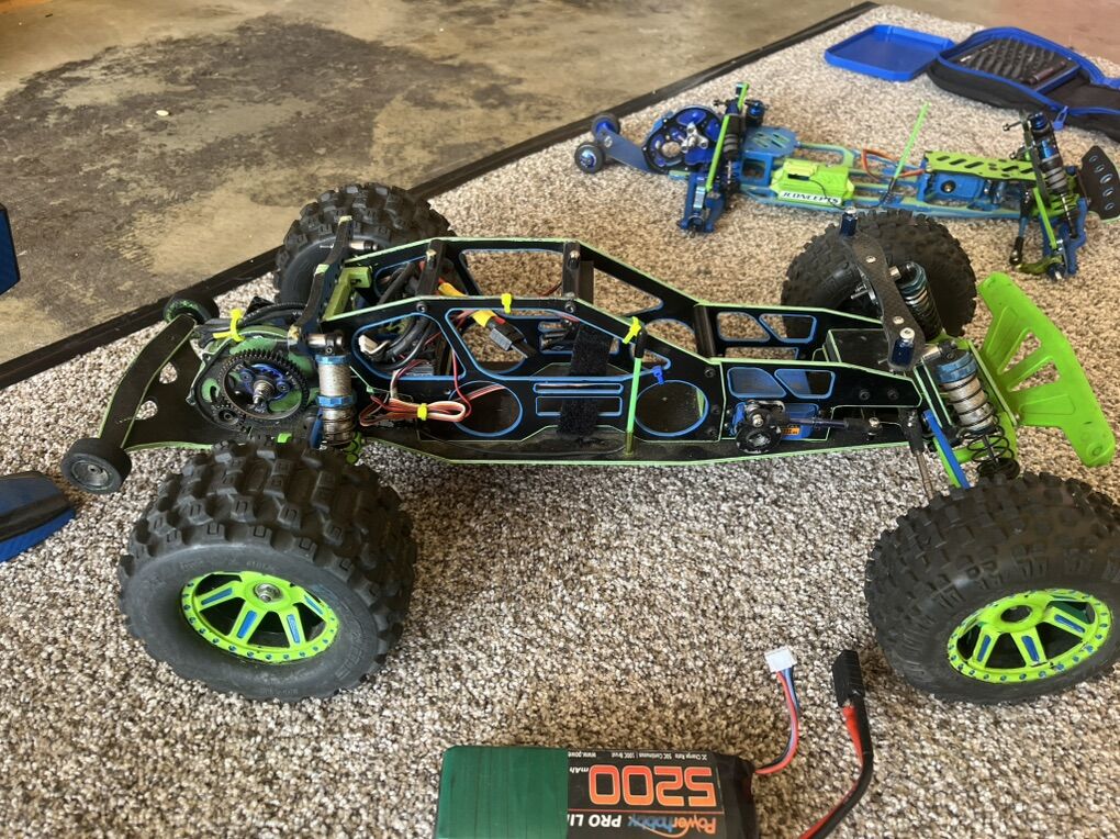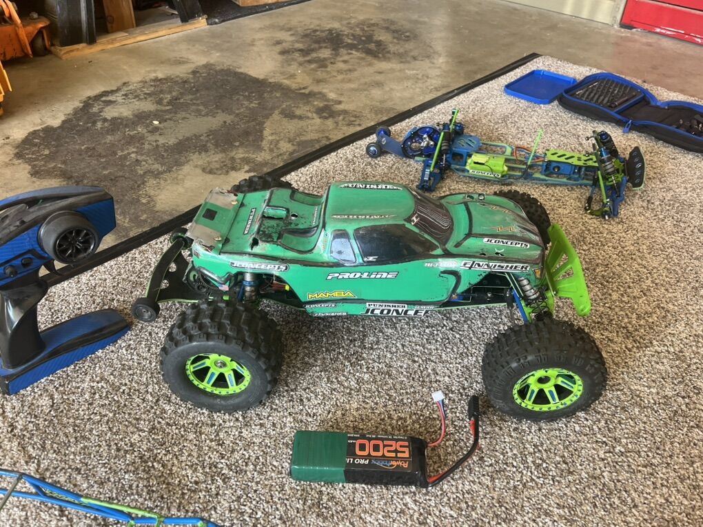 It started off as a Traxxas rustler 2wd and It has all been upgraded with parts like castle creations mamba x esc paired with a castle creations motor, hot racing, pro line , Integy , STRC , RPM and two custom chassis, hot racing 32 pitch all metal spur and pinion gears, integy aluminum transmission housing, all the sun gears inside the transmission have been upgraded Traxxas heavy duty rear axles, proline big bore oil shocks with different springs for different applications. Also comes with complete tool kit to work on the cars with. This car is super fast upward of 75 mph with all the upgrades super fun I could go on and on with all the upgraded parts, but I don’t wanna do that. Just check out the pictures everything is in the them. If you have any questions just ask.