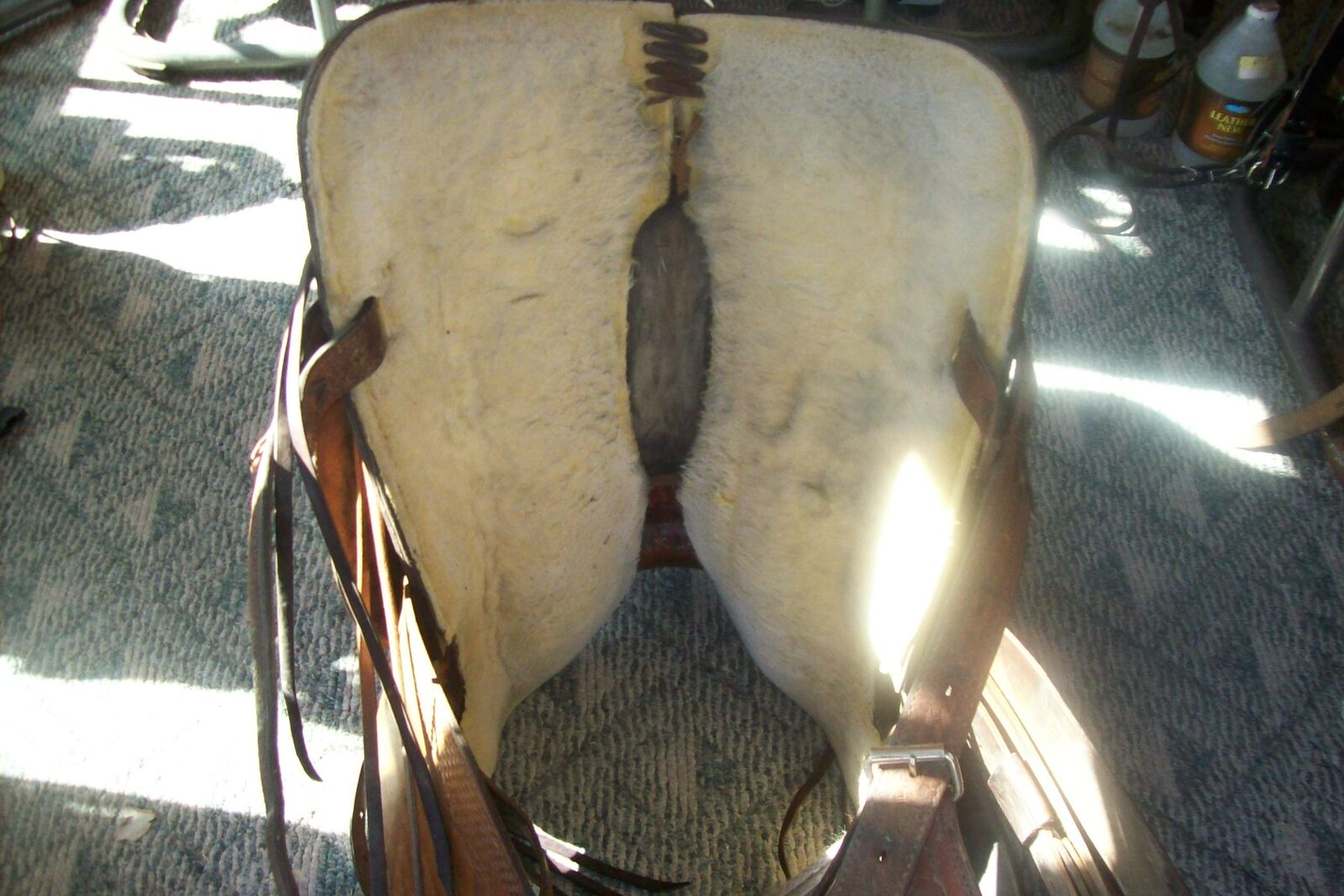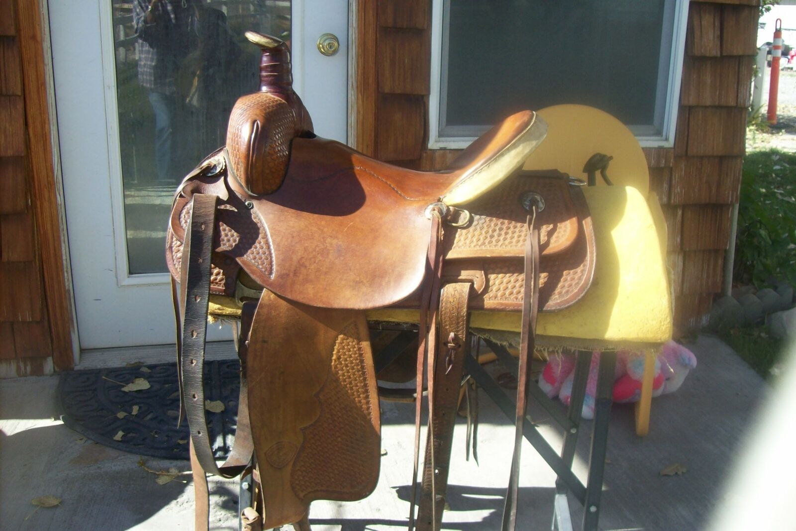 VenmoTHE SADDLE IS IN GRAT CONDITION,RIDER GREW OLD AND HAS QUIT RIDING,WERE TRYING TO FIND THE RIGHT HOME FOR THIS ONE.RAWHIDE TREE,THE SADDLE WAS BORN TO BE A RANCHER BUT WOULD MAKE A GREAT TRAIL OR HUNTING SADDLE AS WELL,THE SADDLE HAS ALL ITS ORIGINAL RIGGINGS,WITH THE EXCEPTION OF A BREAST STRAP.THE SADDLE HAS A 26.5" SKIRT AND A 7.5" GULLET SHOULD FIT MOST HORSES AND MULES FINE.IT A HAS A CROUPER RING BUILT IN ON THE REAR JOCKY,VERY NICE SADDLE IN GREAT SHAPE.