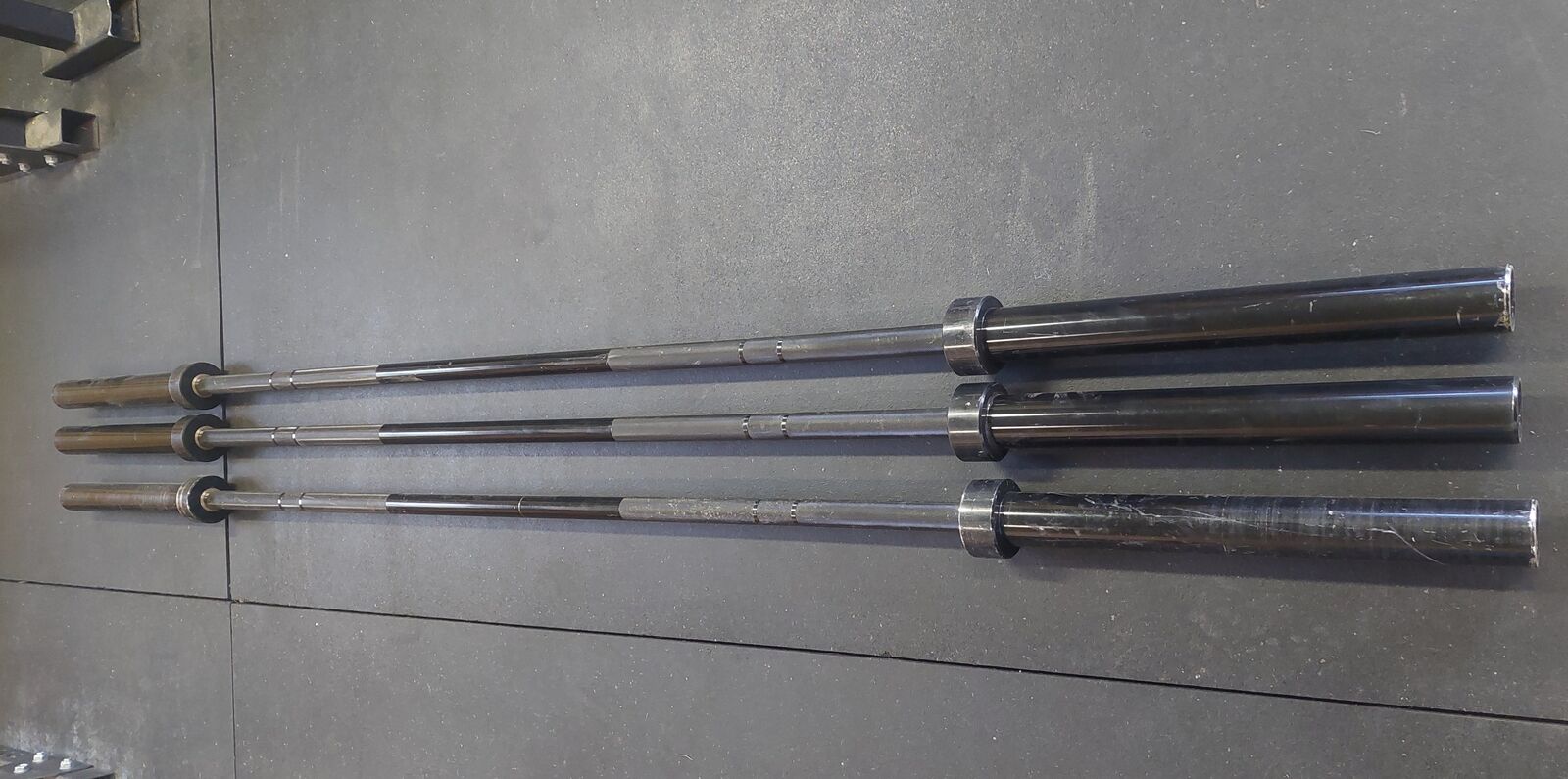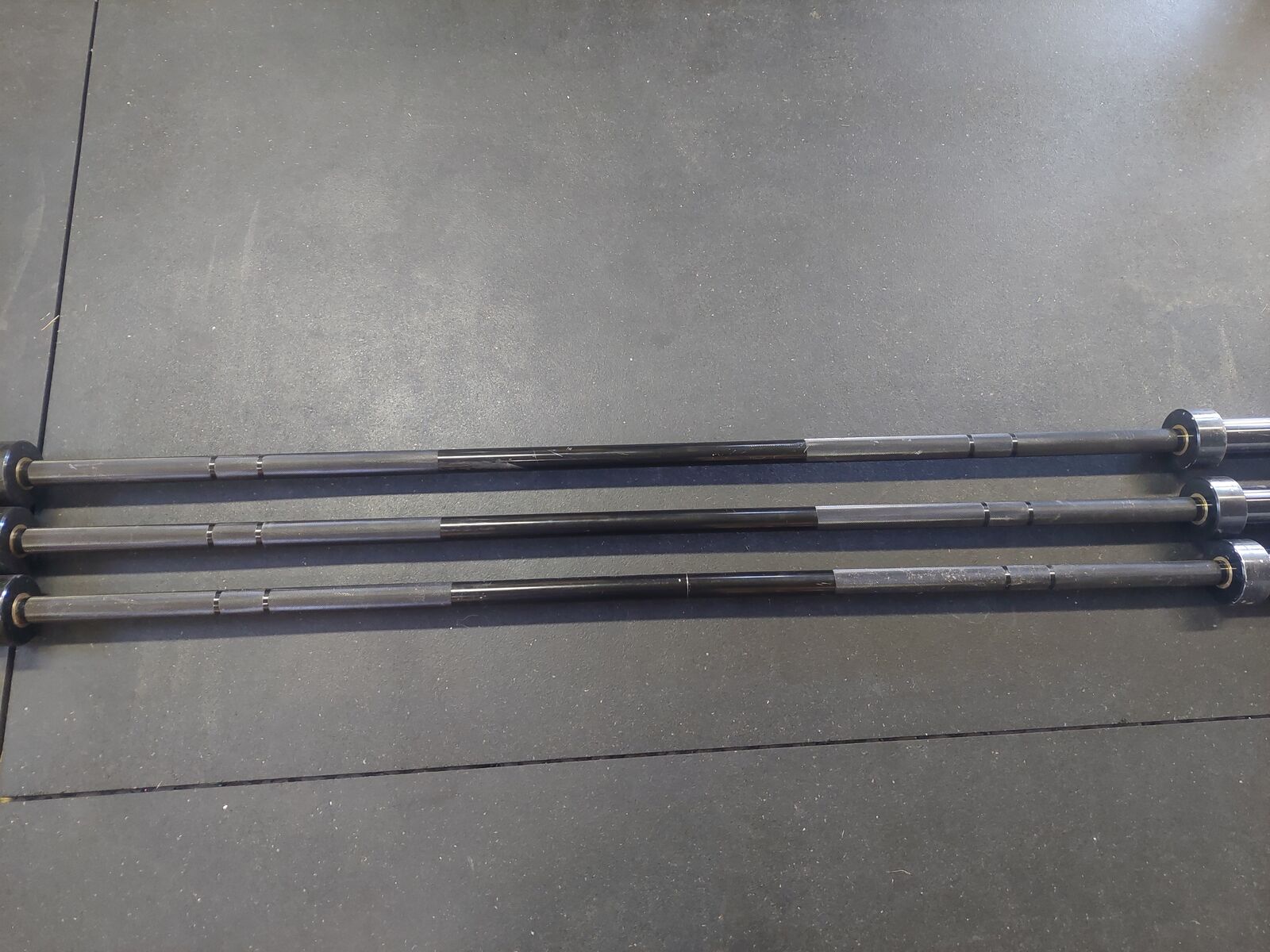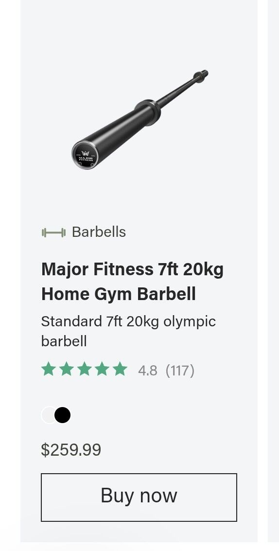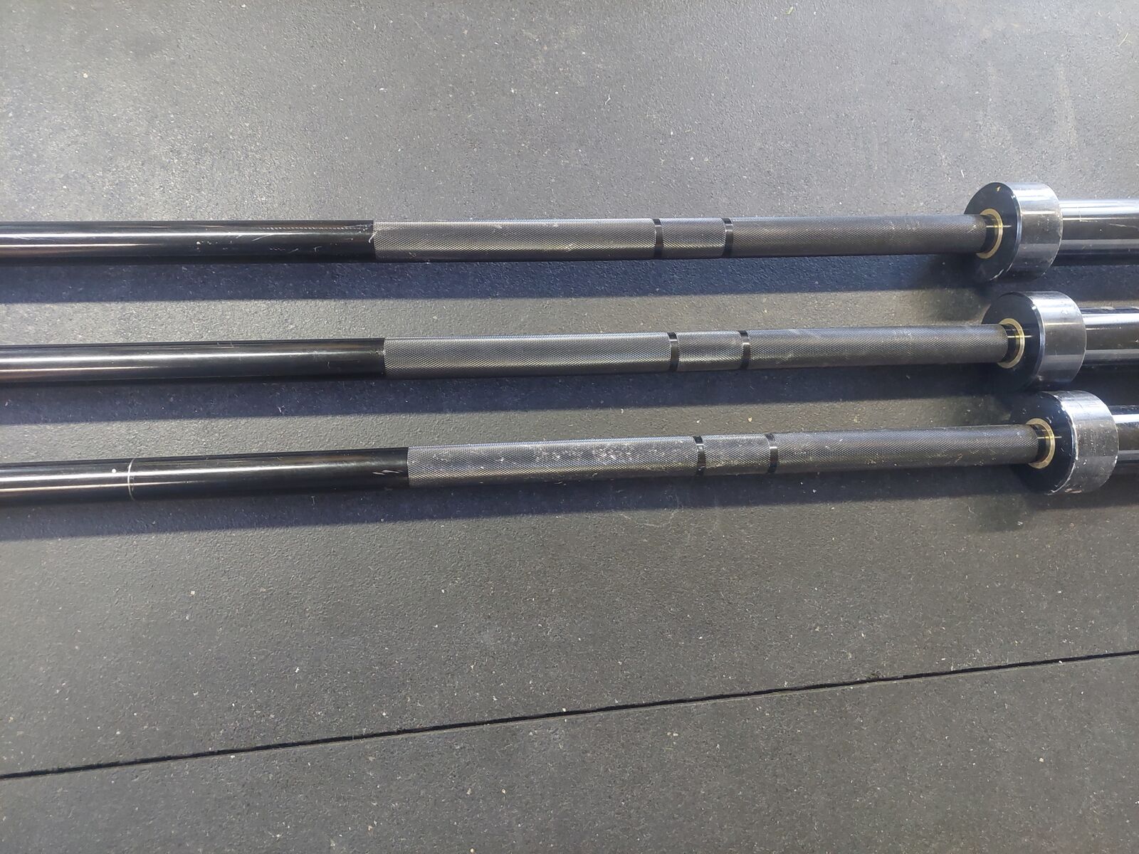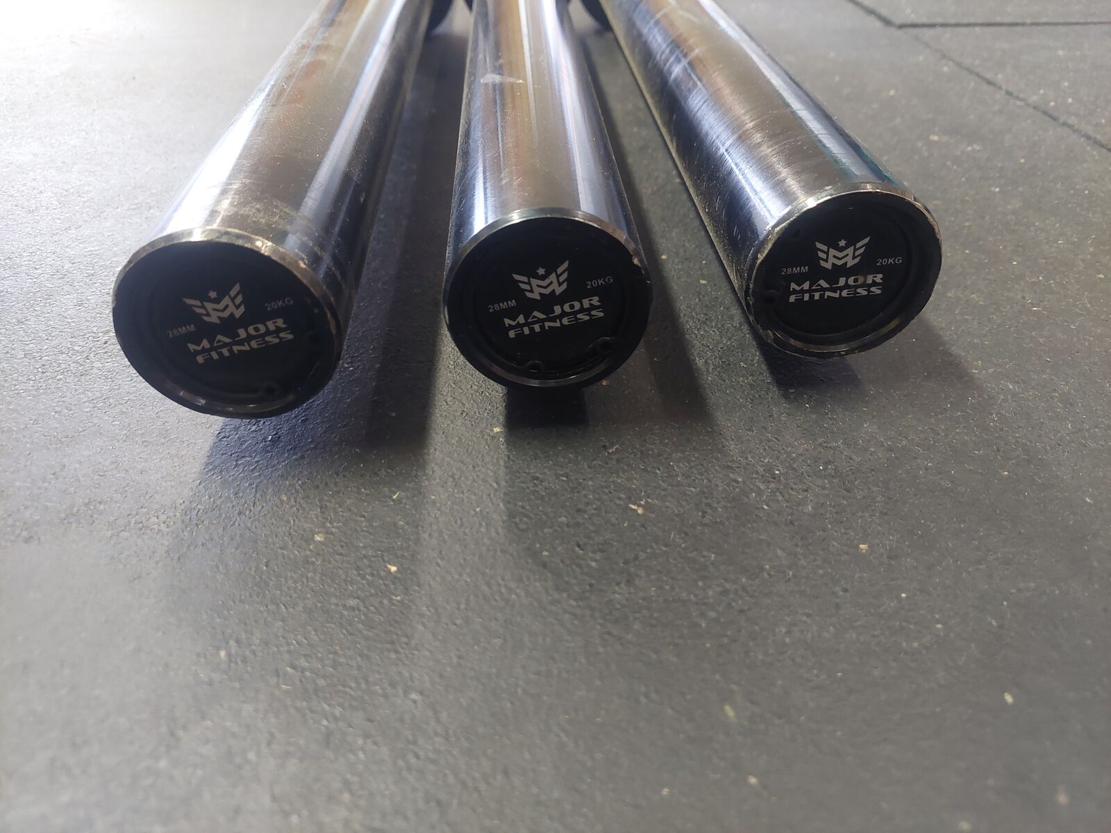 VenmoMajor fitness brand barbells. Light to medium knurling. Good all around bar. These sell brand new from 250.00 to 300.00. These olympic bars are 45 lbs and 7ft long.