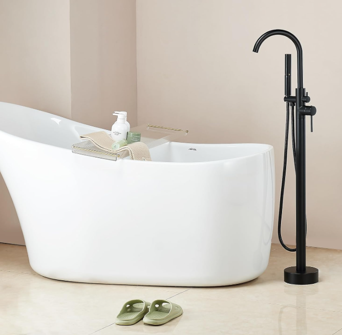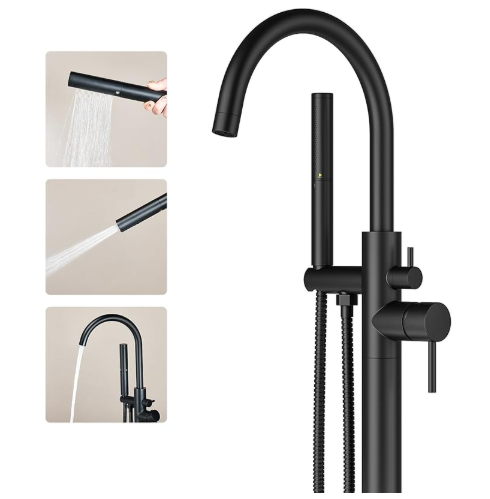 ZelleUltra-High Water Flow – Fill Your Tub FasterFeaturing a high-performance brass valve and 1/2” large-diameter hoses, this freestanding tub filler delivers a maximum water flow of 7.4 GPM through the main spout, filling a standard 55-gallon bathtub in just 7.4 minutes. The 2.8 GPM handheld shower ensures strong spray power for both bathing and rinsing