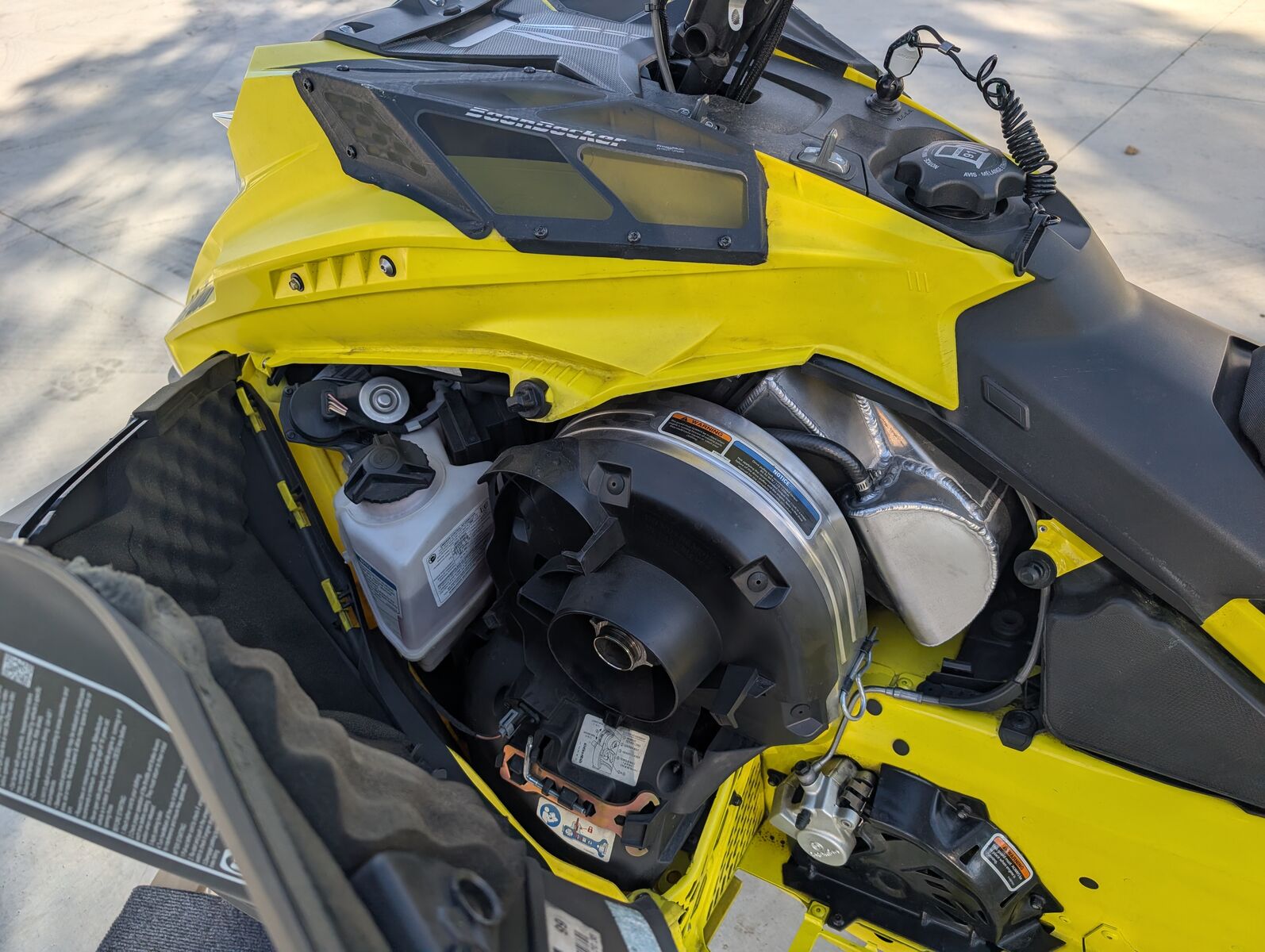 This is not your average 850 Turbo. This sled came directly from Ski-Doo’s race department and was built with their own race tune that adds ~30 extra horsepower over stock. According to BoonDocker, the tune was done by Ski-Doo themselves — perfectly dialed and capable of running more boost than standard models.