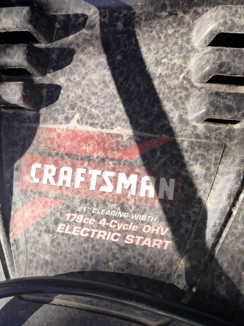 VenmoCraftsman 4 cycle snowblower 179cc 21-in clearance width it's been sitting in a garage for 4 years it starts up but won't stay going. $200 text is best