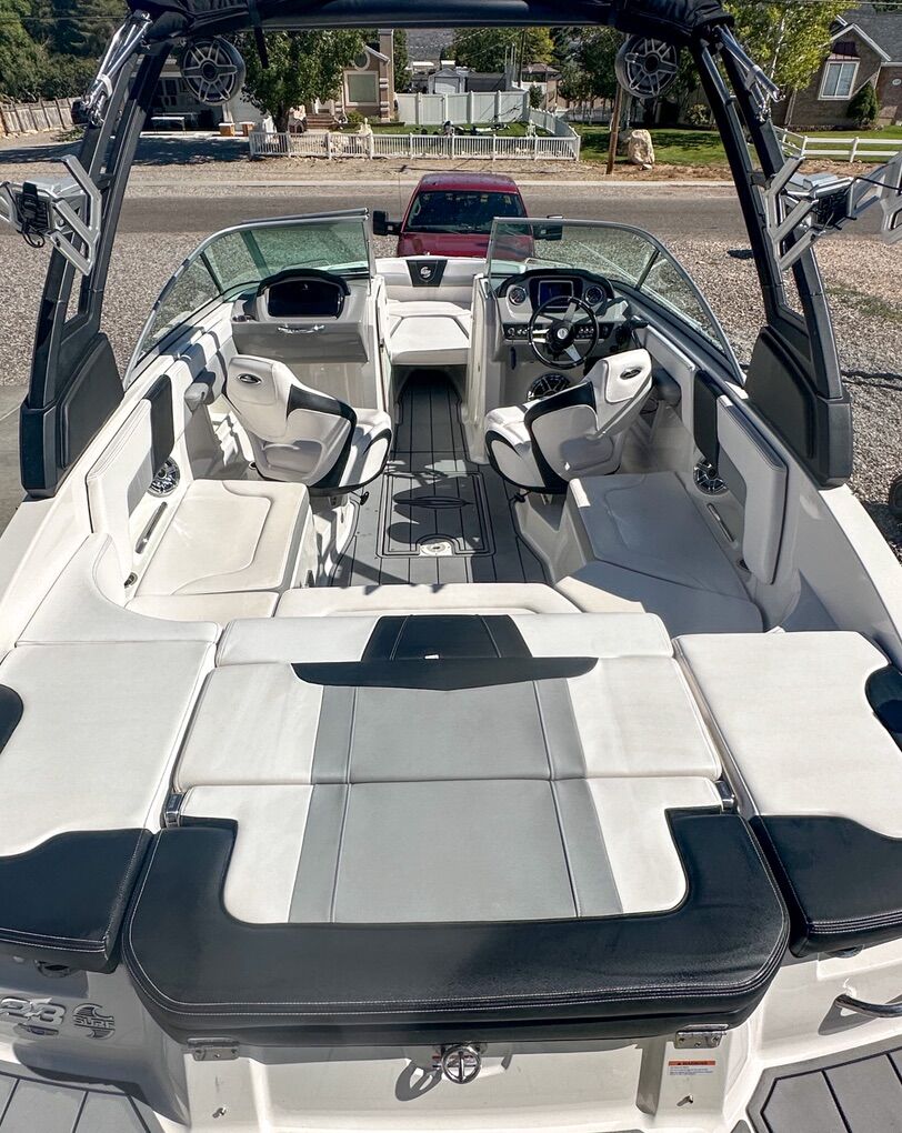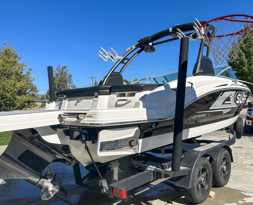 2021 Chaparral 23’ surf with extended swim deck. Equipped with the Volvo penta 300 V8 engine. 280 hours. This boat is fully loaded with all available upgrades Surf gate wrist band remote Bimini top Power controlled tower Upgraded JL sound system Swim deck and glove box stereo controls Snap in sea deck flooring Snap on covers Full sun cover Viper ll control center Cruise control Surf graphics Table and two table mounts Ballast Malibu surf gates Dual prop 45 gallon fuel tank Double stitched leather with surf badging Two swivel captain chairs 5 year factory warranty still active through 2026.