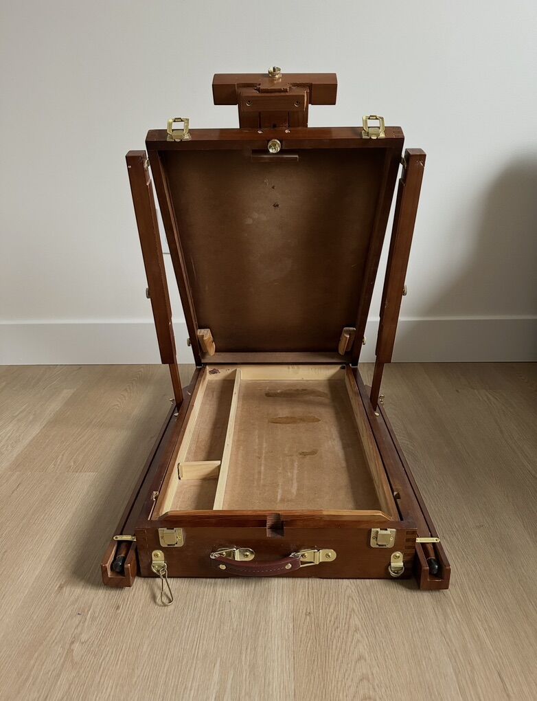 Portable French Easel, Large Sketchbox Easel - Foldable Portable Beechwood Field Art Easel with Drawer. Comes with Box Artists & Hobbyists Painting on the Go, Lightly used in good condition. Serious inquiries only All makes it a durable and classic french style easel All in One Multi-fun on the go.