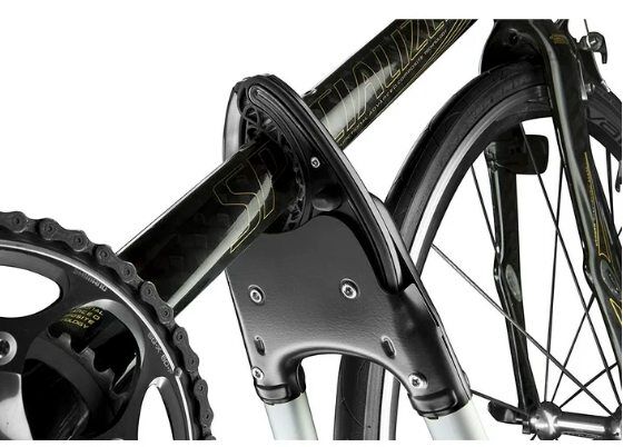 About this item Self-adjusting jaws automatically wrap around the downtube for precise frame hold Large wheel trays hold your bike securely during transit Lock included to secure the bike to the carrier Fits bike frame sup to 3-3/8 inches in diameter and tires up to 2.6-inches wide