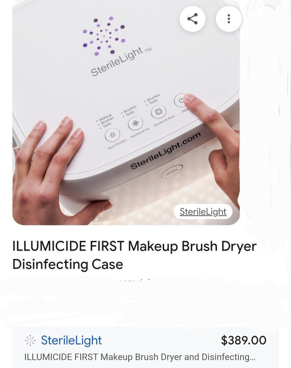 VenmoBrand new SterileLight ILLUMICIDE FIRST MAKEUP BRUSH DRYER DISINFECTING CASE. Retails for $389 plus tax. Please look at the pics. If you have any questions, message me. Thanks!