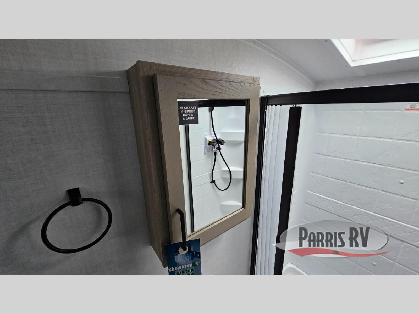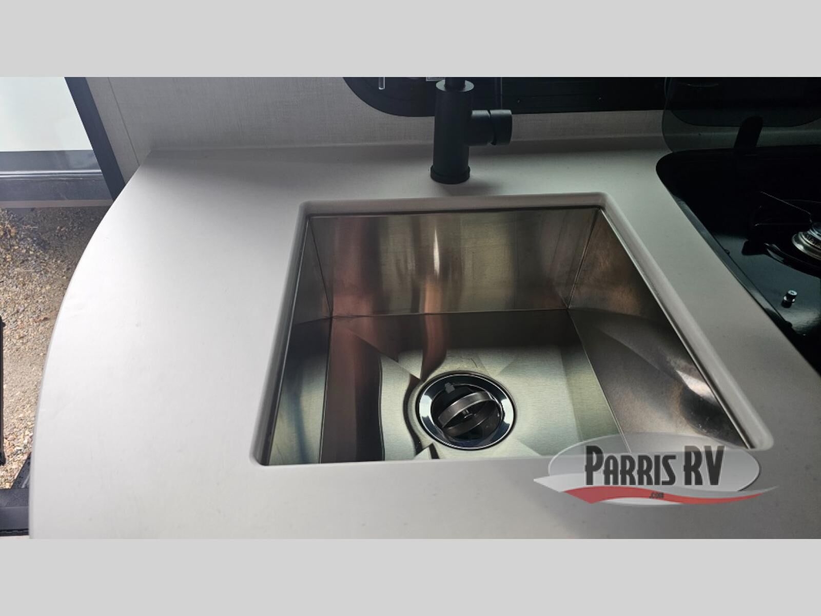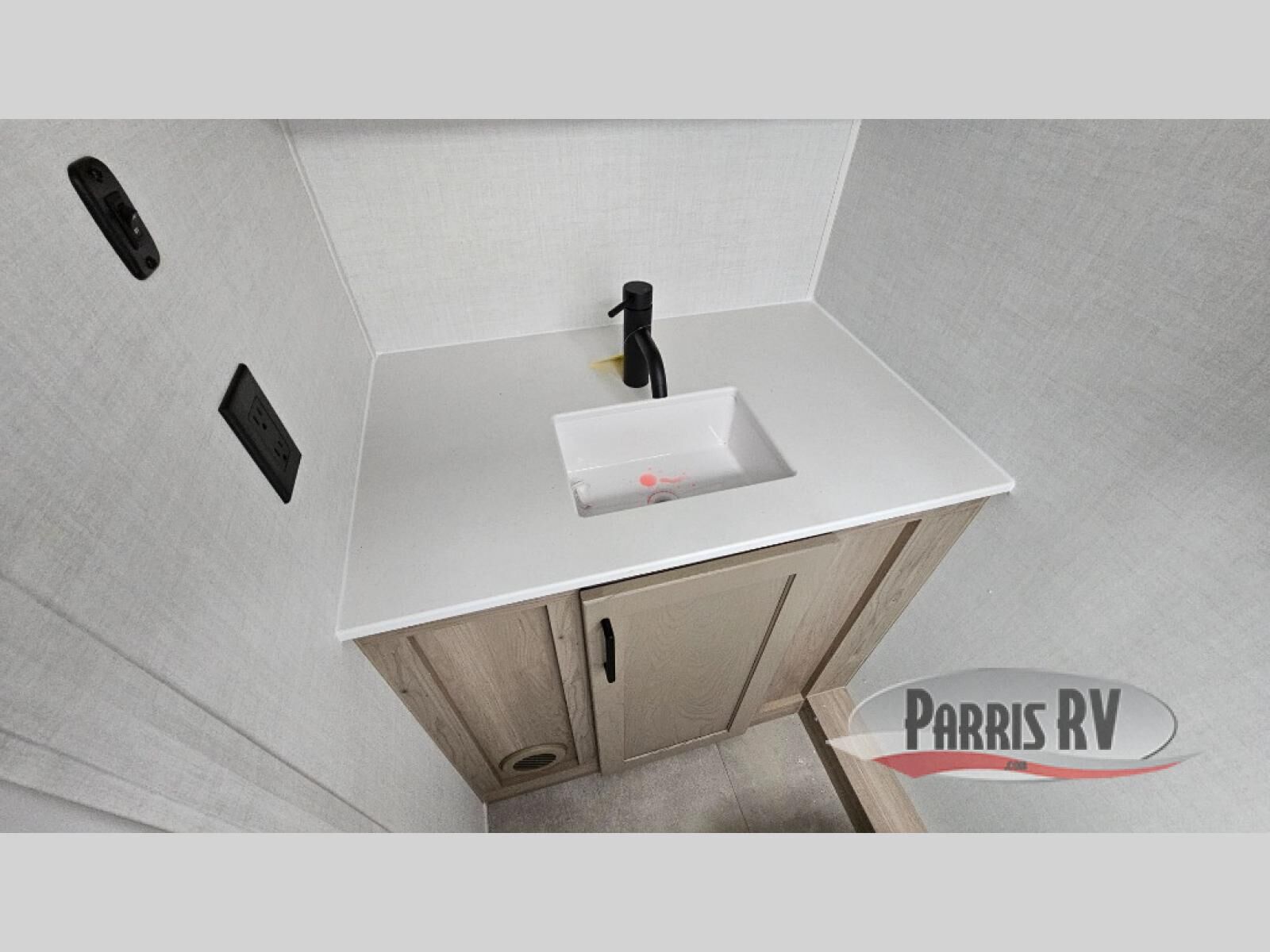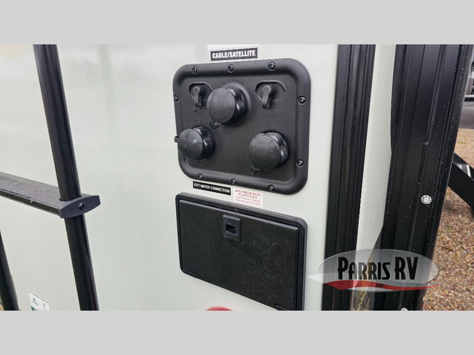 This travel trailer will feel more like home with its front bedroom and walk-around full-size bed. You'll enjoy the 12V TV as you relax on the 72" sofa with a table and cupholders. The full rear bath includes a spacious shower to clean up in each day and there is a linen closet for clean towels. When you're ready to prepare dinner you'll have a three burner cooktop and microwave oven indoors! And don't forget the exterior storage allows you to bring along beach toys and tackle boxes. The optional Power Package available on this model includes three 200W solar panels, a side solar plug-in, a 3kW 160A inverter, and more off-grid features!