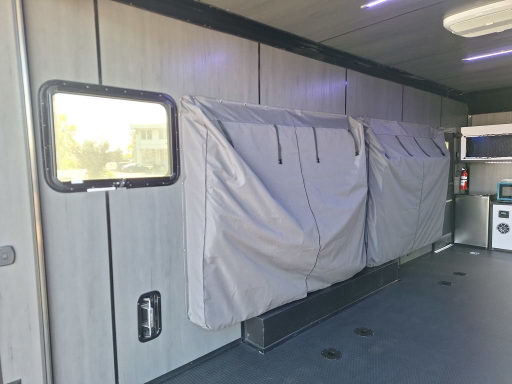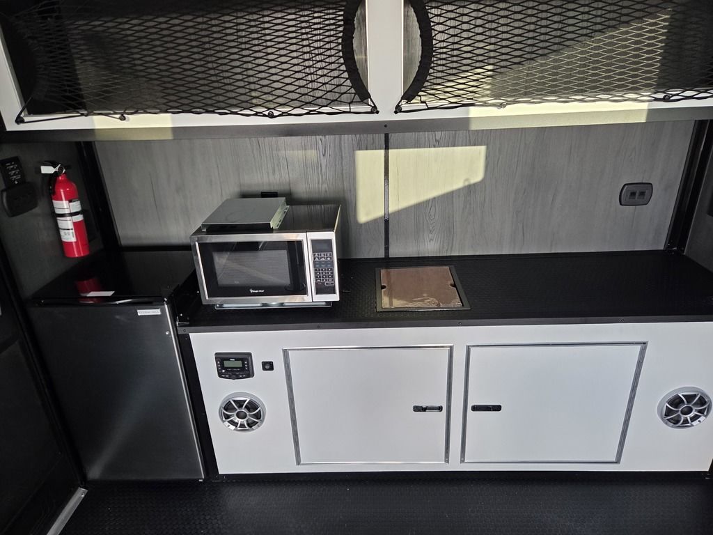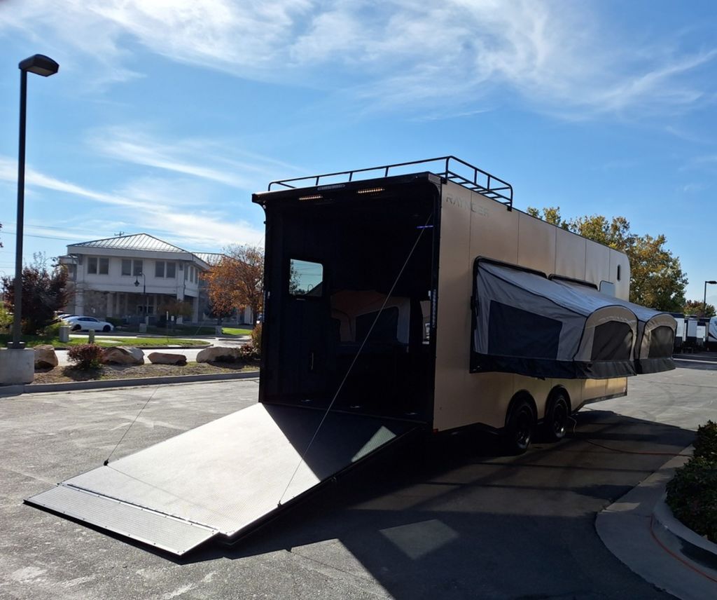 LIMITED TIME $436 A MONTH WITH ZERO DOWN WITH OUR SPECIAL LOCAL CREDIT UNION PARTNER!!! NO PRE-PAYMENT PENALTIES!!! NEW MODEL WITH 12V FRIDGE, MICROWAVE!!! FRESHLY ADDED 40 GAL FRESH WATER TANK, HEATED WATER, SINK, AND HEATED OUTDOOR SHOWER!!! WILL FIT ANY STOCK SIDE BY SIDE UTV!!! RAYNGER PREMIUM OFF ROAD TOY HAULER CAMPER!!! 18 INCH GROUND CLEARANCE!!! OFF ROAD TIRES!!! FULLY INSULATED!!! HEATING AND A/C!!! WET SOUND STEREO!!! FOUR FOLD OUT/POP OUT TENTS WITH MATTRESS!!! CARGO BASKET!!! LED LIT AWNING!!! 87 Inch Rear Entry Height/90 INCH INTERIOR HEIGHT!!! 95 Inch Rear Entry Width!!! Aluminum Ventilated Locking Generator Box!!! UPGRADED 5K TORSION AXLES!!! And Much MUCH MORE!!! Check out our Specs!!! Will fit ANY stock 4 Seater Side by Side • 6” I Beam Frame• Flat Top Design• Flat Front Design• Wall Posts 16” on Center• Cross Members 16” on Center• Roof Bows 16” on Center• Rust Inhibiting Z-Tech Protection on Chassis• Ameraguard on Tongue• Ameraguard on Rear Bumper• Ameraguard Around All Door Openings and Stepwell• Ameraguard Around Edges of Ramp Door• 3500 LB Spring Axles• 2-5/16” Coupler• One-Piece Aluminum Roof• ST235/75R15 Aluminum Wheels with Chrome Center Caps• 2000# Ramp Door with Eberhard Latch• 30” Tempered Glass RV Door with Screen Door• .030 Exterior Metal with Screwless Sides• 24” Black Stoneguard• 3” Black Bottom Trim• Sand Pad• Black Door Hold• 2.7mm Charcoal Textured Vinyl Ceiling • 9mm Charcoal Textured Vinyl Walls• 3/4” Engineered Wood Floor with Rubber Coin Overlay• (6) 1200 LB Floor D rings Installed with Backer Plates• LED Clearance Lights and Tail Lights• LED Back-up Lights• No Show Wheel Box• Spoiler with Toggle Switch• RV Step• 7’ Interior• (2) 17” Chrome Base Lights with Switch• (1) Black 17” Spot Light with Switch• (1) 30 Amp Panel with Marine Plug• A/C Unit with Heat Strip• (3) Interior Recepts• (1) Exterior Recept• 12V Battery and Charge Line• Prep for Backup Camera• Wet Sounds System• (3) Blue Interior Cabinet Lights• (1) 6’ Section of Flex Lights• Black ATP Rear Header and Hoop• Black ATP Fenders• Insulated Walls & Ceiling• Base Cabinets• Overhead Cabinets with Netting Over Compartments• Pop Out Tent• Black ATP Storage/Generator Box Mounted On Tongue TW097032