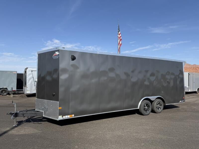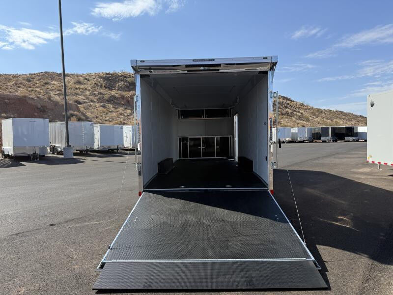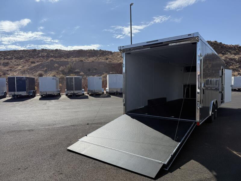 Stock #: AH0058 Weight: 4,150 GVWR: 9,990 Payload Capacity: 5,840 Trailer Specs: 2-5,200 lbs Axles Sub-5000lb Rear Ramp Door w/Ramp Extn and Spoiler 12v LED 24" 9k Lumen Scene Light 12v Surface-Mount Switch 7'6Tall Sub-86-3/4in Tube Posts Finished Inside w/Cabinets Color: Sub-Silverfrost .030 Aluminum Exterior WASATCH TRAILER SALES - LARGEST TRAILER SELECTION IN UTAH Hurricane: (435) 239-8920 | 6477 W Foothills Canyon Dr. Hurricane, UT 84737 View More Inventory: www.wasatchtrailer.com Over 2,000 trailers in stock at Wasatch Trailer Sales! With three convenient Utah locations - Layton, Springville, and Hurricane - finding the perfect trailer has never been easier. We offer one of the largest inventories around, backed by quality you can trust, superior value, and unparalleled pricing. Don't see exactly what you need? Call or text 435-239-8920 with 20+ top manufacturers and easy financing, we'll get you on the road fast! Whatever you haul, we've got the right trailer - in stock year-round!