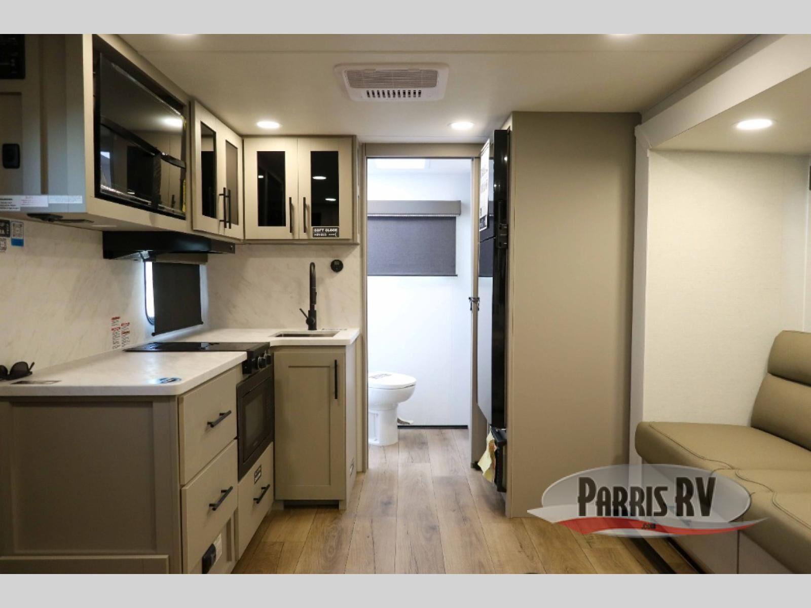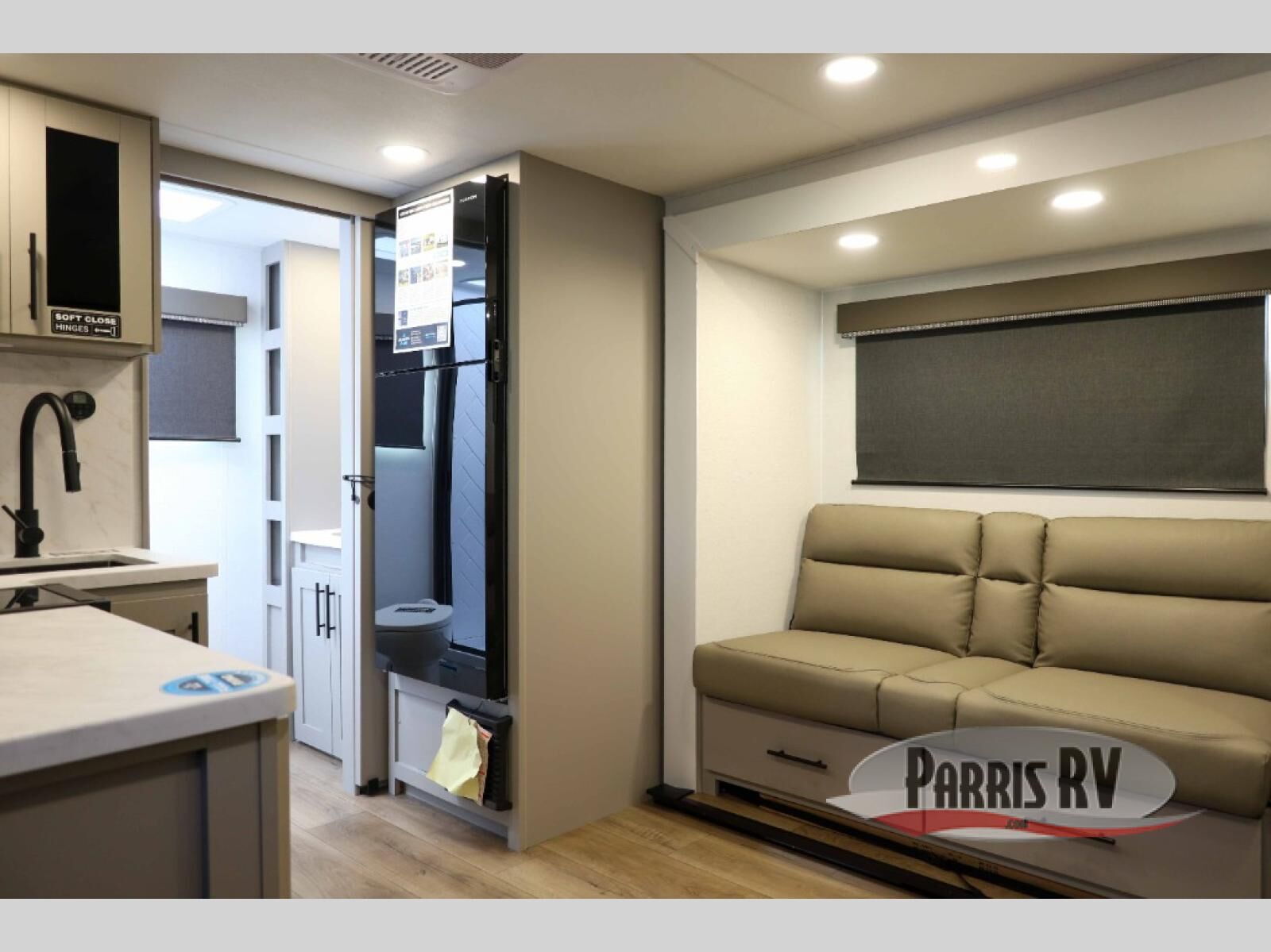 Enter this thoughtfully designed trailer through the 28" entry and step into a space that blends comfort and functionality. At the front, a 60" x 80" queen bed offers restful sleep, complete with a wardrobe at the foot and overhead storage. The center features an L-shaped kitchen equipped with a sink, 2-burner cooktop, overhead cabinets, and a 32-inch TV, while directly across, a 10-cu. ft. refrigerator and a slide out with a 60" jackknife sofa maximize space and convenience. At the rear, enjoy a full bathroom with a 30" x 36" shower, toilet, sink, linen shelves, and additional overhead storage making this compact trailer feel like home wherever you go.