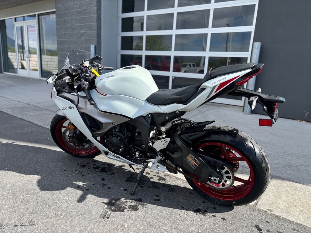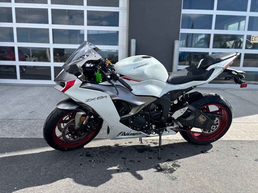 Used 2024 Kawasaki Ninja ZX-6R Motorcycle For Sale In Salt Lake City, UT This Pre-Owned 2024 Kawasaki Ninja ZX-6R Motorcycle is for sale at Karl Malone Powersports SLC conveniently located in Salt Lake City, Utah. This model comes equipped with aftermarket stealth mirrors and no exhaust can for additional weight savings! Our knowledgeable team is eager to assist you, so don’t hesitate to contact us today to schedule an appointment. If this isn't the exact Kawasaki Motorcycle you're looking for don't hesitate to go back and revise your search. We're sure to have the perfect Motorcycle for you in our showroom in Utah. We invite you to visit us at Utah’s premier Kawasaki dealer for new and pre-owned Motorcycles for sale. Let us help you find the ideal Motorcycle to take home today! Karl Malone Powersports SLC Address: 1379 W 3300 S, Salt Lake City, UT 84119 Phone: (801) 972-8725 2024 Kawasaki Ninja ZX-6R Experience Supersport Obsession with the new Ninja® ZX™-6R motorcycle. Push all boundaries with unrivaled performance that prioritizes control during high-performance sport riding. To us, the ability to inspire full confidence and clarity when needed most is the highest exhilaration. Features may include: POWER FLEX ON THE STREET & TRACK Powered by a potent 636cc engine and advanced performance technology, the Ninja® ZX™-6R supersport delivers legendary Ninja® power on and off the track. HANDLING PRECISION PERFECTED The Ninja® ZX™-6R motorcycle gets ahead of sharp turns with optimized engine performance across the entire rpm range, class-leading components, and advanced rider support technology. STYLING BEAUTIFULLY AGGRESSIVE The Ninja® ZX™-6R features all-new smooth-flowing supersport styling with 3D interwoven bodywork. ADVANCED TECHNOLOGY HIGH-TECH SUPERSPORT Race-DNA and advanced technology is what the Ninja® family of motorcycles is known for. Because of this, it comes as no surprise that the Ninja® ZX™-6R supersport features the advanced technology and performance you expect from a Ninja. ADDITIONAL Kawasaki Quick Shifter (KQS) Selectable power modes combined with Kawasaki TRaction Control (KTRC) Kawasaki Intelligent anti-lock Brake System (KIBS) SHOWA Separate Function Fork Big Piston (SFF-BP), fully adjustable Pressed-aluminum perimeter frame Pirelli Diablo Rosso IV tires
