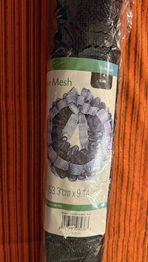 $5. Decorative Black Mesh Fabric by FloraCraft for floral arrangements, home decor, and events. Bends easily and holds its shape. Measures approx. 21" wide by 10 yards long. Unknown how much of the 10 yards remains. Cash preferred. Pick up only in southwest Orem or American Fork.
