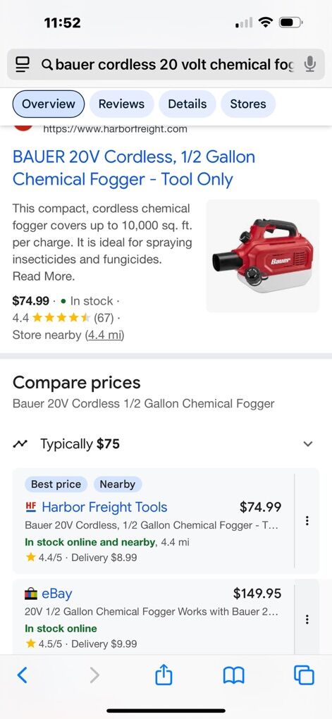 brand new Bauer 20 volt fogger machine! Awesome to take pests out of your home, bushes, trees,etc!! Many possible uses! Comes as shown with battery and charger! Brand new, no Box! It’s correctly running 79.99-149.99 each online and locally now as shown in photos! Buy and use today, no shipping, no waiting! Don’t pay retail prices, call Dustin now instead at 801-205-3404, I Ned it gone!