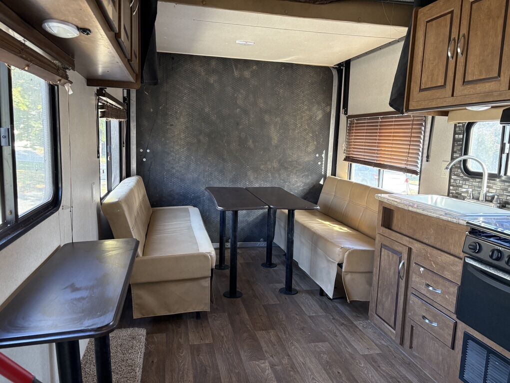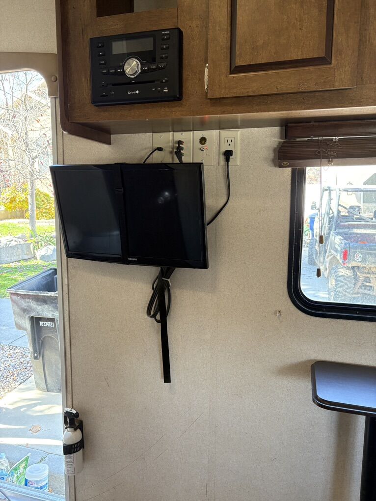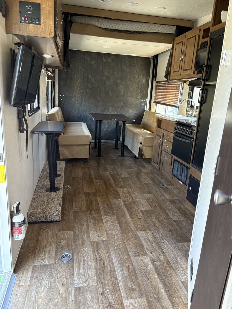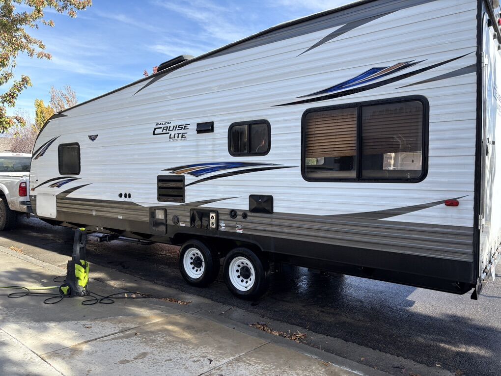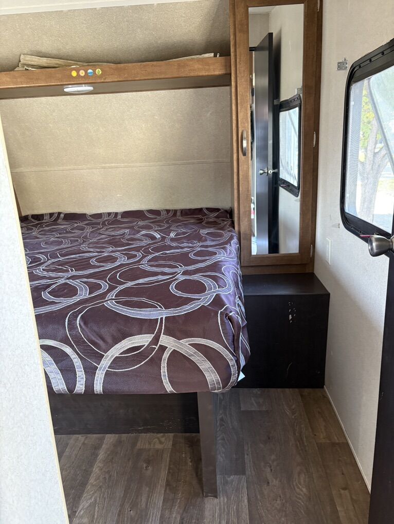 Salem Cruise Great toy hauler. We are the second owners and have had it since 2020. It’s been perfect for our adventures. Solar panels - we never run out of battery Inverter - see picture Queen bed that you can walk around with closets on each side Fridge Oven Water heater A/C All appliances work. The trailer was just taken out last week. Bunk bed Can sleep 6 comfortably with the couches, bunk, master bedroom.
