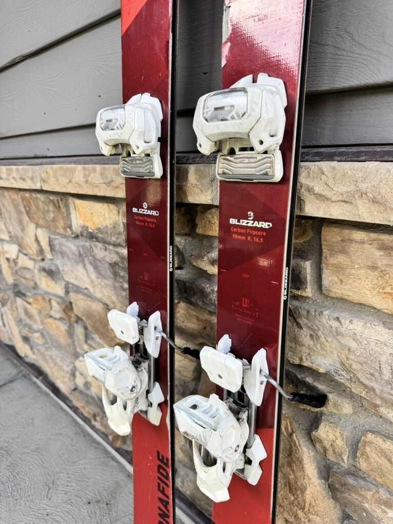 ApplePayBlizzard 173 Length, 98 Underfoot & 16.5 Radius with a Tyrolia Attack Bindings. Base of the skis are in very good condition just need a wax and tune. The tops are used and have several defaced areas. Bindings are white and this ski has only had one owner with the same binding. Boot size 26.5.