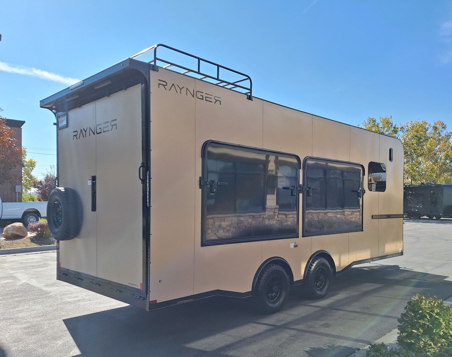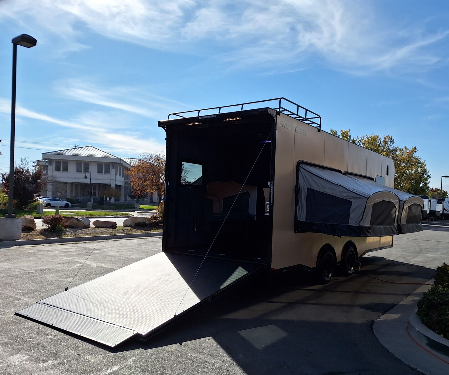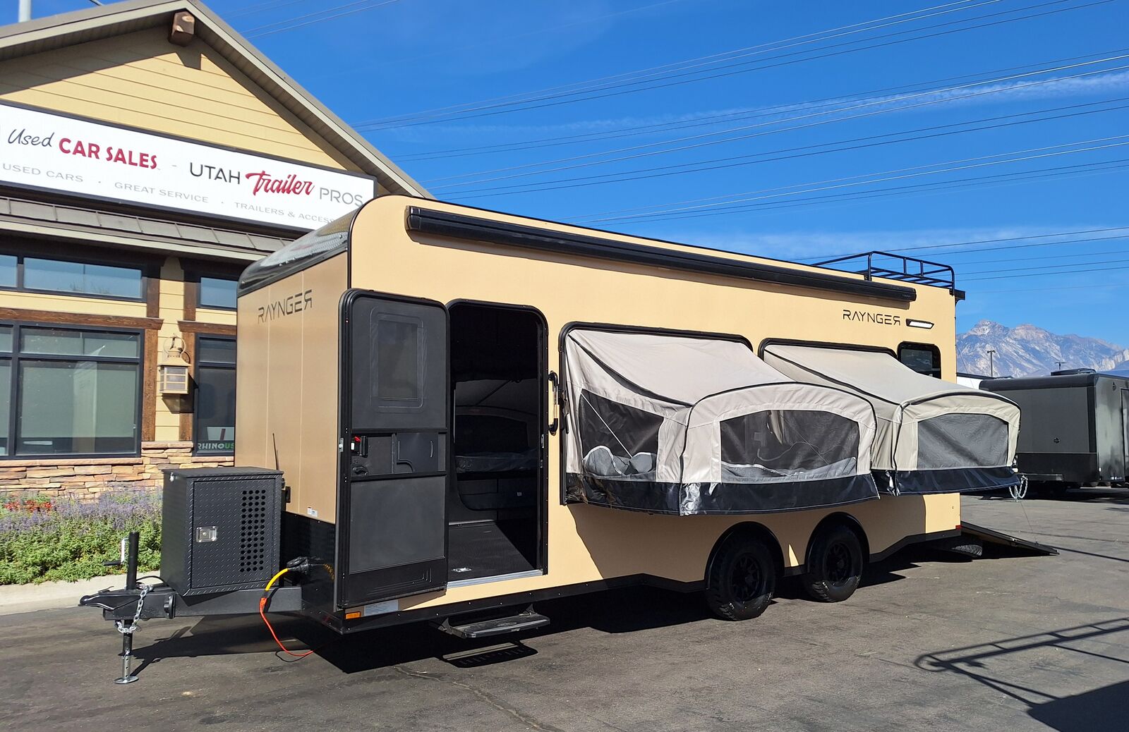 LIMITED TIME $436 A MONTH WITH ZERO DOWN WITH OUR SPECIAL LOCAL CREDIT UNION PARTNER!!! NO PRE-PAYMENT PENALTIES!!! NEW MODEL WITH 12V FRIDGE AND MICROWAVE!!! WILL FIT ANY STOCK SIDE BY SIDE UTV!!! RAYNGER PREMIUM OFF ROAD TOY HAULER CAMPER!!! 18 INCH GROUND CLEARANCE!!! OFF ROAD TIRES!!! FULLY INSULATED!!! HEATING AND A/C!!! WET SOUND STEREO!!! FOUR FOLD OUT/POP OUT TENTS WITH MATTRESS!!! CARGO BASKET!!! LED LIT AWNING!!! 87 Inch Rear Entry Height/90 INCH INTERIOR HEIGHT!!! 95 Inch Rear Entry Width!!! Aluminum Ventilated Locking Generator Box!!! UPGRADED 5K TORSION AXLES!!! And Much MUCH MORE!!! Check out our Specs!!! Will fit ANY stock 4 Seater Side by Side ⢠6ā I Beam Frame⢠Flat Top Design⢠Flat Front Design⢠Wall Posts 16ā on Center⢠Cross Members 16ā on Center⢠Roof Bows 16ā on Center⢠Rust Inhibiting Z-Tech Protection on Chassis⢠Ameraguard on Tongue⢠Ameraguard on Rear Bumper⢠Ameraguard Around All Door Openings and Stepwell⢠Ameraguard Around Edges of Ramp Door⢠3500 LB Spring Axles⢠2-5/16ā Coupler⢠One-Piece Aluminum Roof⢠ST235/75R15 Aluminum Wheels with Chrome Center Caps⢠2000# Ramp Door with Eberhard Latch⢠30ā Tempered Glass RV Door with Screen Door⢠.030 Exterior Metal with Screwless Sides⢠24ā Black Stoneguard⢠3ā Black Bottom Trim⢠Sand Pad⢠Black Door Hold⢠2.7mm Charcoal Textured Vinyl Ceiling ⢠9mm Charcoal Textured Vinyl Walls⢠3/4ā Engineered Wood Floor with Rubber Coin Overlay⢠(6) 1200 LB Floor D rings Installed with Backer Plates⢠LED Clearance Lights and Tail Lights⢠LED Back-up Lights⢠No Show Wheel Box⢠Spoiler with Toggle Switch⢠RV Step⢠7ā Interior⢠(2) 17ā Chrome Base Lights with Switch⢠(1) Black 17ā Spot Light with Switch⢠(1) 30 Amp Panel with Marine Plug⢠A/C Unit with Heat Strip⢠(3) Interior Recepts⢠(1) Exterior Recept⢠12V Battery and Charge Line⢠Prep for Backup Camera⢠Wet Sounds System⢠(3) Blue Interior Cabinet Lights⢠(1) 6ā Section of Flex Lights⢠Black ATP Rear Header and Hoop⢠Black ATP Fenders⢠Insulated Walls & Ceiling⢠Base Cabinets⢠Overhead Cabinets with Netting Over Compartments⢠Pop Out Tent⢠Black ATP Storage/Generator Box Mounted On Tongue TW097032