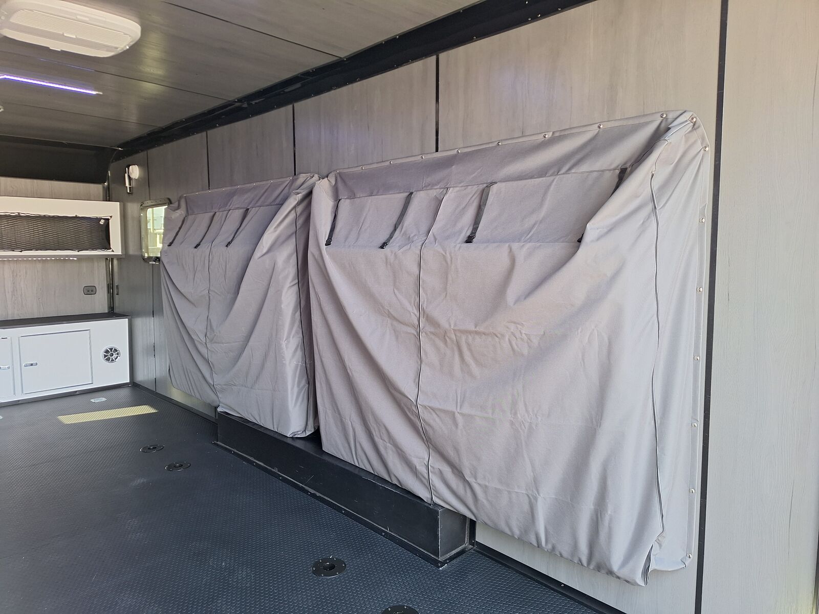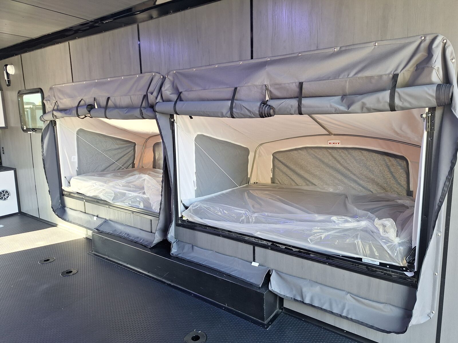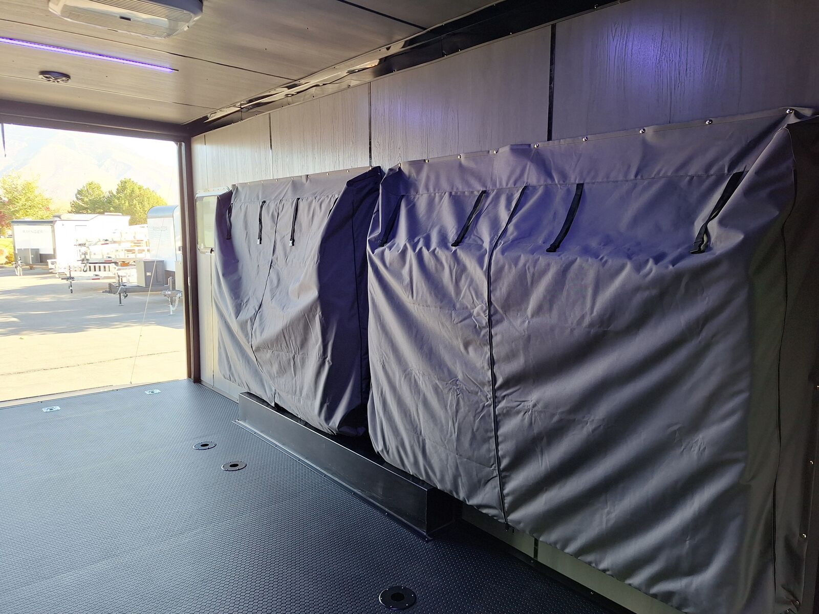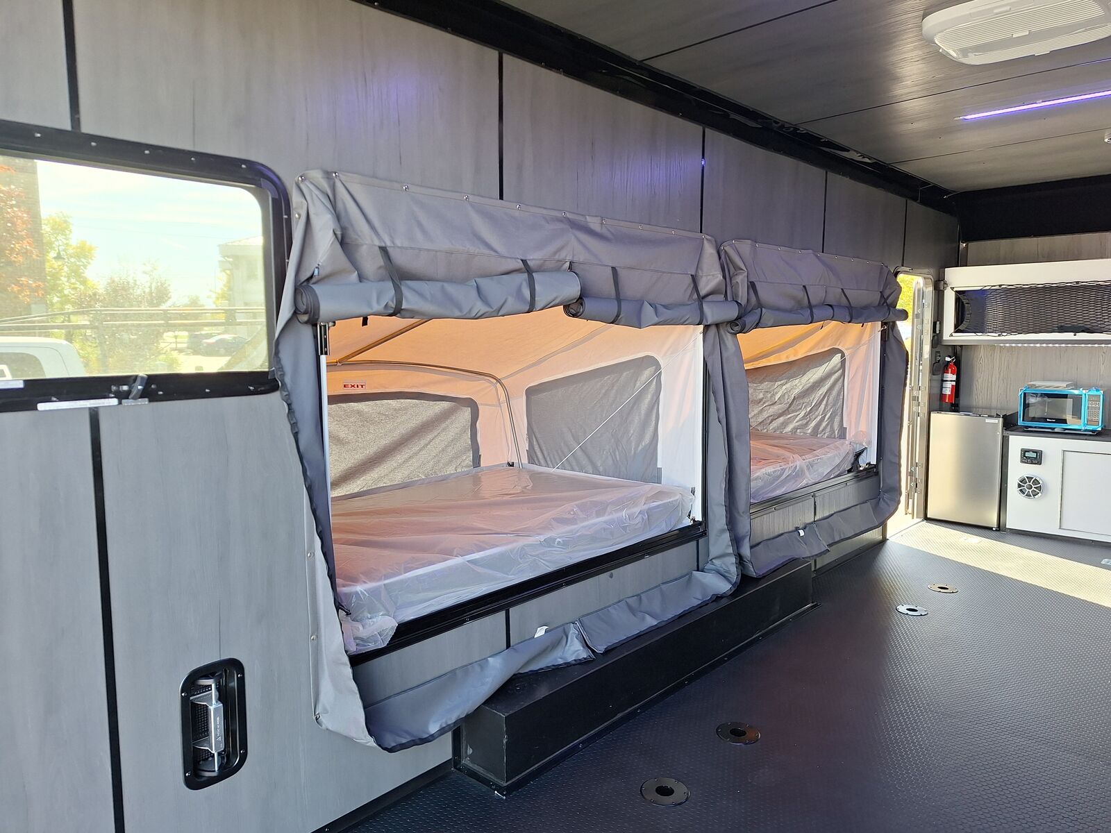 LIMITED TIME $436 A MONTH WITH ZERO DOWN WITH OUR SPECIAL LOCAL CREDIT UNION PARTNER!!! NO PRE-PAYMENT PENALTIES!!! NEW MODEL WITH 12V FRIDGE AND MICROWAVE!!! WILL FIT ANY STOCK SIDE BY SIDE UTV!!! RAYNGER PREMIUM OFF ROAD TOY HAULER CAMPER!!! 18 INCH GROUND CLEARANCE!!! OFF ROAD TIRES!!! FULLY INSULATED!!! HEATING AND A/C!!! WET SOUND STEREO!!! FOUR FOLD OUT/POP OUT TENTS WITH MATTRESS!!! CARGO BASKET!!! LED LIT AWNING!!! 87 Inch Rear Entry Height/90 INCH INTERIOR HEIGHT!!! 95 Inch Rear Entry Width!!! Aluminum Ventilated Locking Generator Box!!! UPGRADED 5K TORSION AXLES!!! And Much MUCH MORE!!! Check out our Specs!!! Will fit ANY stock 4 Seater Side by Side ⢠6ā I Beam Frame⢠Flat Top Design⢠Flat Front Design⢠Wall Posts 16ā on Center⢠Cross Members 16ā on Center⢠Roof Bows 16ā on Center⢠Rust Inhibiting Z-Tech Protection on Chassis⢠Ameraguard on Tongue⢠Ameraguard on Rear Bumper⢠Ameraguard Around All Door Openings and Stepwell⢠Ameraguard Around Edges of Ramp Door⢠3500 LB Spring Axles⢠2-5/16ā Coupler⢠One-Piece Aluminum Roof⢠ST235/75R15 Aluminum Wheels with Chrome Center Caps⢠2000# Ramp Door with Eberhard Latch⢠30ā Tempered Glass RV Door with Screen Door⢠.030 Exterior Metal with Screwless Sides⢠24ā Black Stoneguard⢠3ā Black Bottom Trim⢠Sand Pad⢠Black Door Hold⢠2.7mm Charcoal Textured Vinyl Ceiling ⢠9mm Charcoal Textured Vinyl Walls⢠3/4ā Engineered Wood Floor with Rubber Coin Overlay⢠(6) 1200 LB Floor D rings Installed with Backer Plates⢠LED Clearance Lights and Tail Lights⢠LED Back-up Lights⢠No Show Wheel Box⢠Spoiler with Toggle Switch⢠RV Step⢠7ā Interior⢠(2) 17ā Chrome Base Lights with Switch⢠(1) Black 17ā Spot Light with Switch⢠(1) 30 Amp Panel with Marine Plug⢠A/C Unit with Heat Strip⢠(3) Interior Recepts⢠(1) Exterior Recept⢠12V Battery and Charge Line⢠Prep for Backup Camera⢠Wet Sounds System⢠(3) Blue Interior Cabinet Lights⢠(1) 6ā Section of Flex Lights⢠Black ATP Rear Header and Hoop⢠Black ATP Fenders⢠Insulated Walls & Ceiling⢠Base Cabinets⢠Overhead Cabinets with Netting Over Compartments⢠Pop Out Tent⢠Black ATP Storage/Generator Box Mounted On Tongue TW097032
