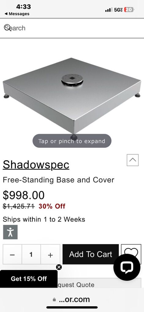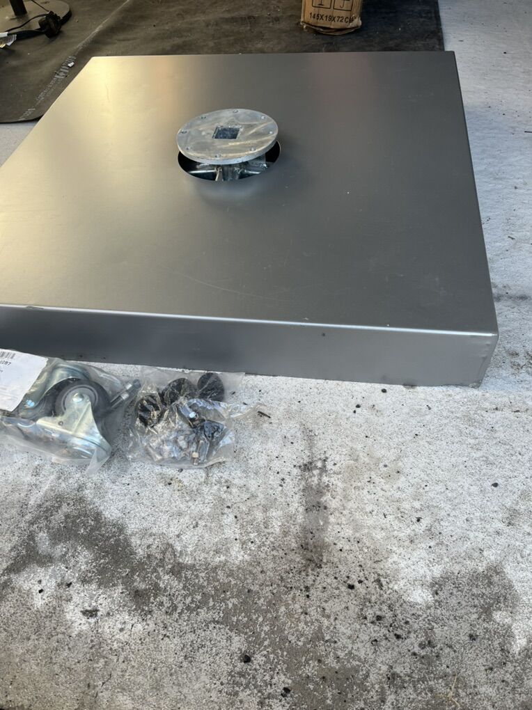 Dimensions: 39''W x 39''D x 7''H Weight: 22 lbs mobile or stationary. Free standing base. 2” square opening.