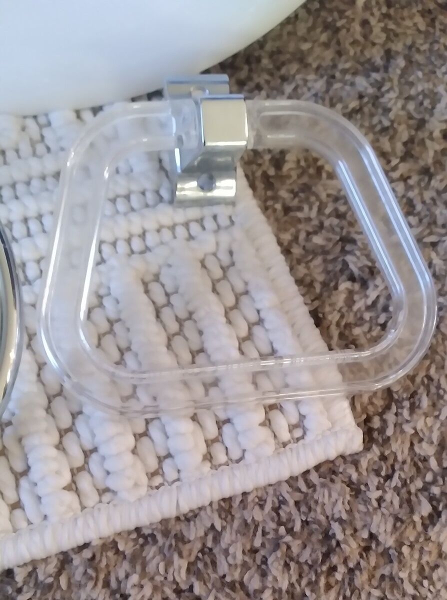 PayPalWhite oval bathroom sink with silver faucet, two towel rings and toilet paper holder. Everything is clean and in great shape - we just changed to different colors.