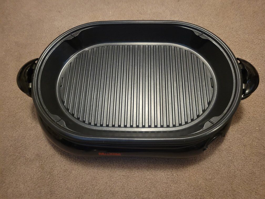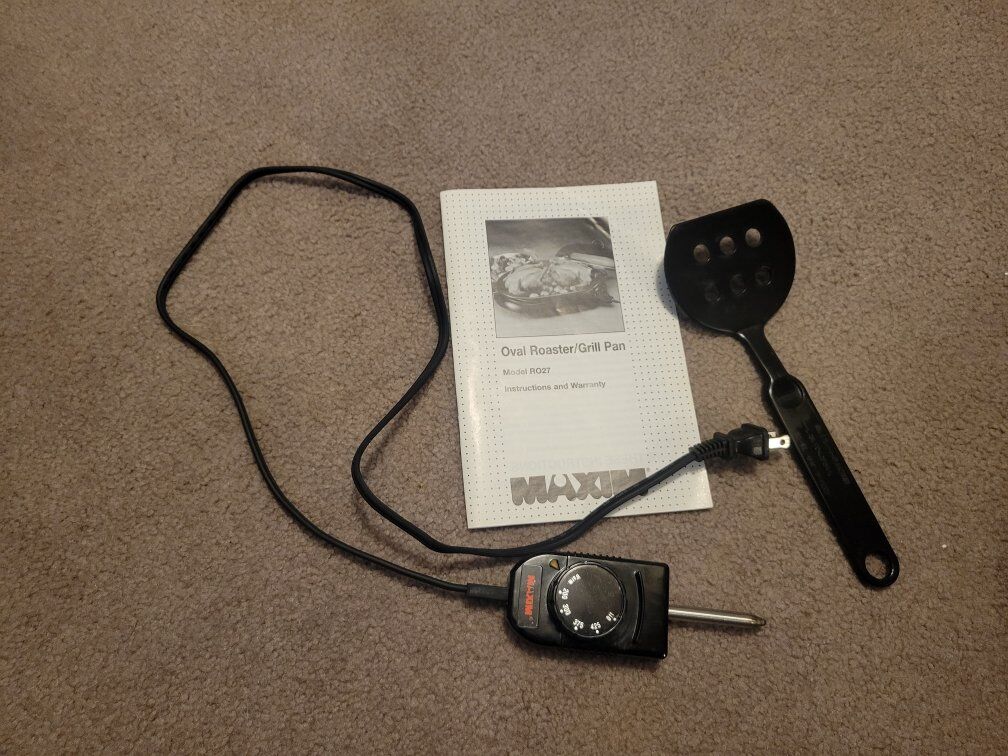 VenmoThis is a LIKE NEW Maxim Electric Roaster/Grill. Oval 19" x 12 1/2" x 2" deep. Comes with Skillet tray, Grilling tray, Lid, Spatula, Electric cord, Electric grill base, and Instructions.