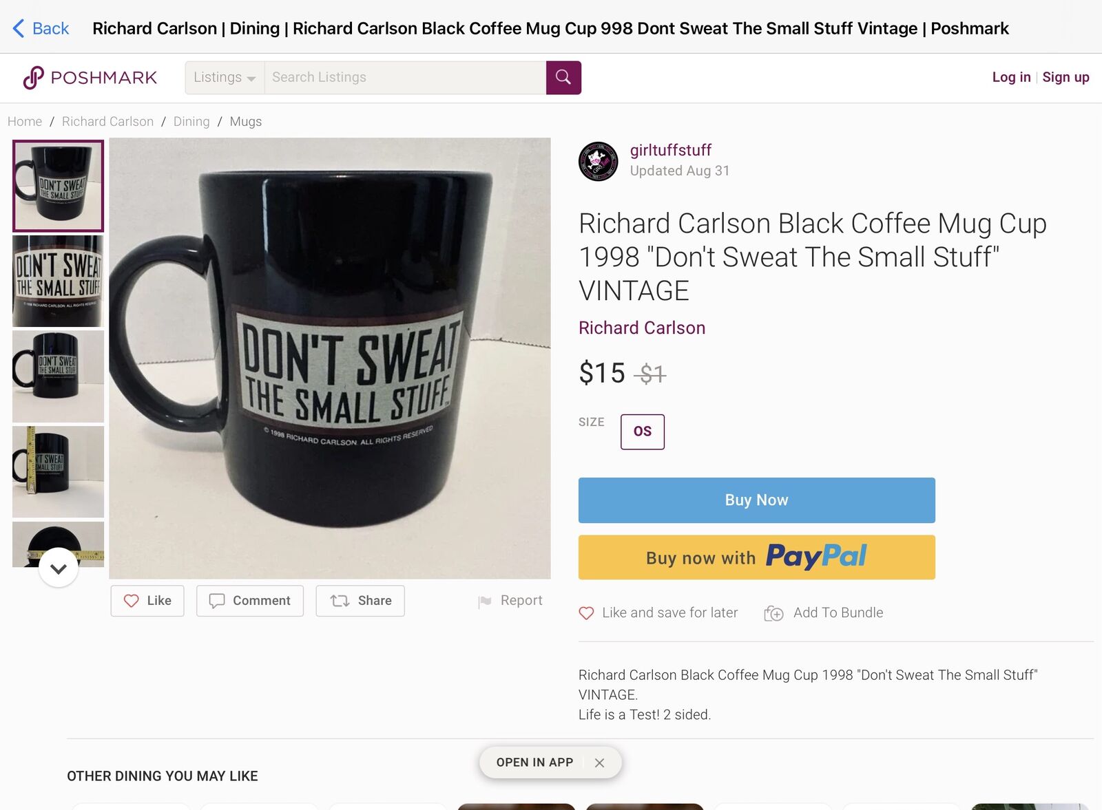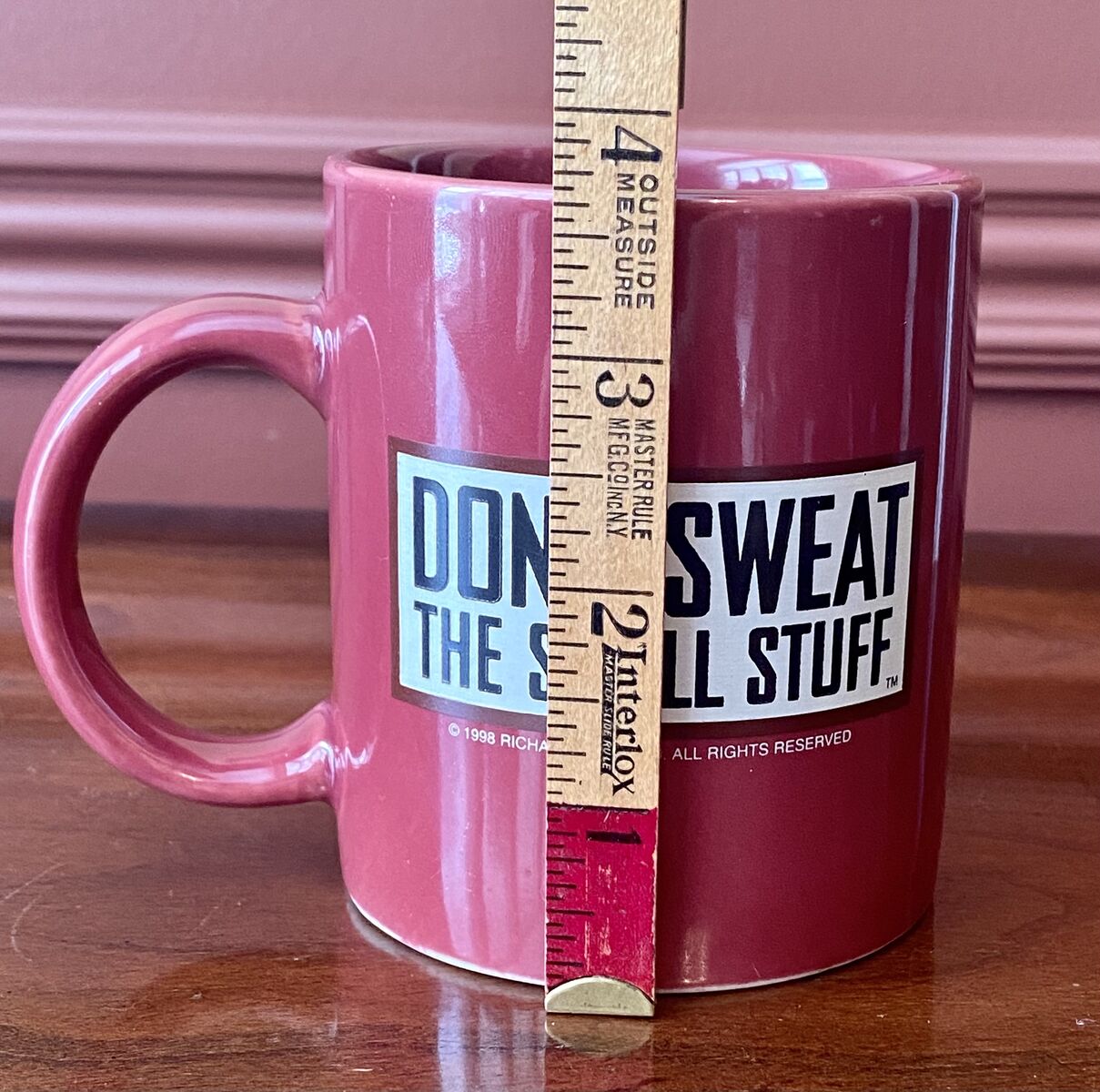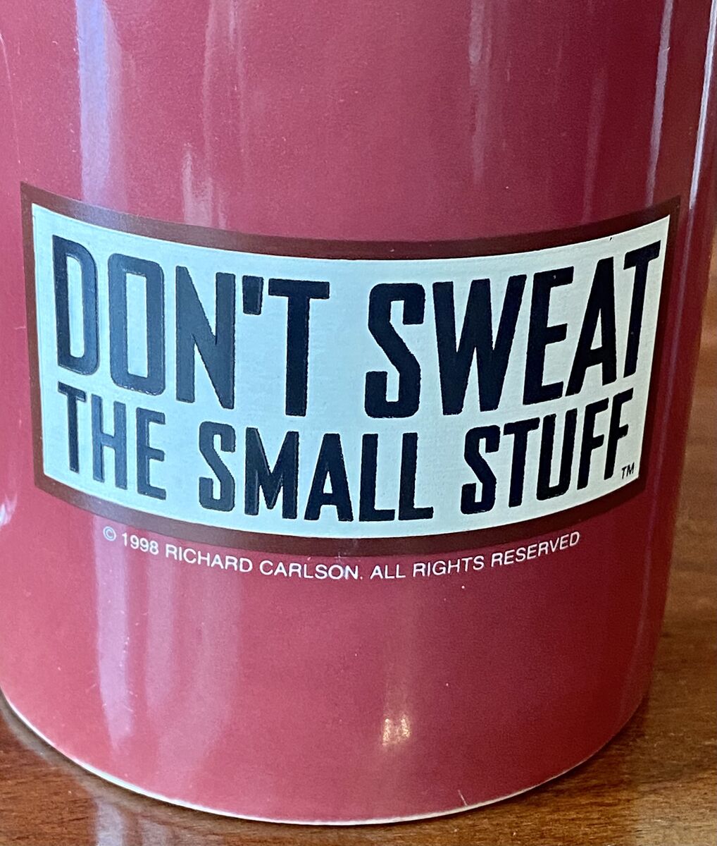 Vintage 1998 Richard Carlson Mug - Don’t Sweat The Small Stuff - Will This Matter A Year From Now - C PIX . This is a merchandise piece From the book Don't Sweat aThe Small Stuff written by Richard Carlson. This mug is like new with no chips, breaks, or cracks. It's highly reflective and would make a great gift. It sells for $15 elsewhere. Great Gift.