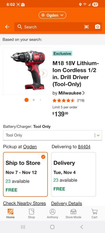 Milwaukee Impact Driver $115 Milwaukee Drill $100 Milwaukee bag free with purchase Milwaukee M12 M18 charger $55 Ryobi Drill $30 Ryobi reciprocating saw $80