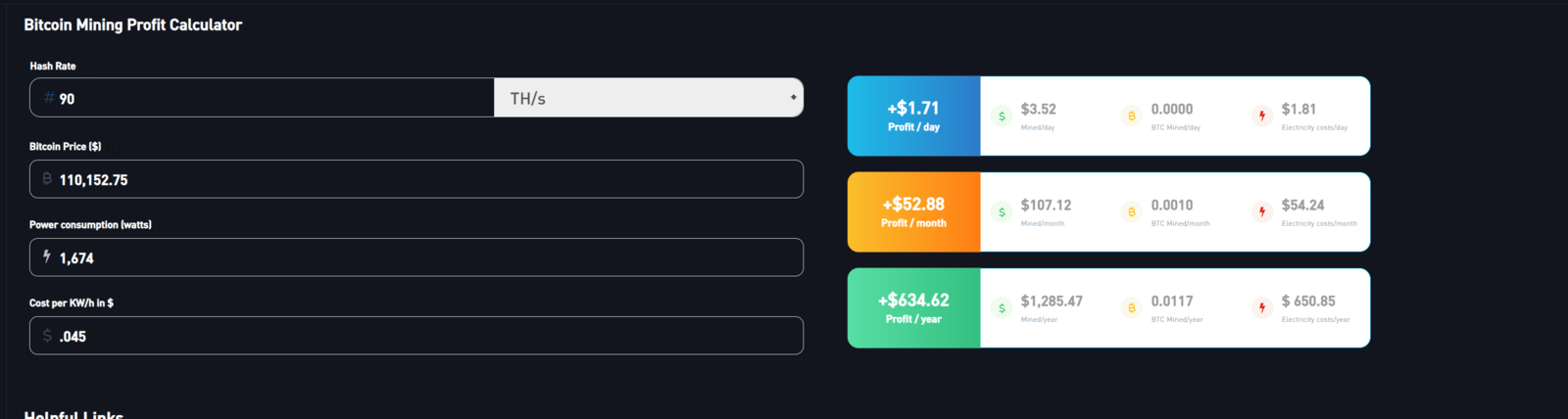 Each unit currenlty mines about $3.52 per day....