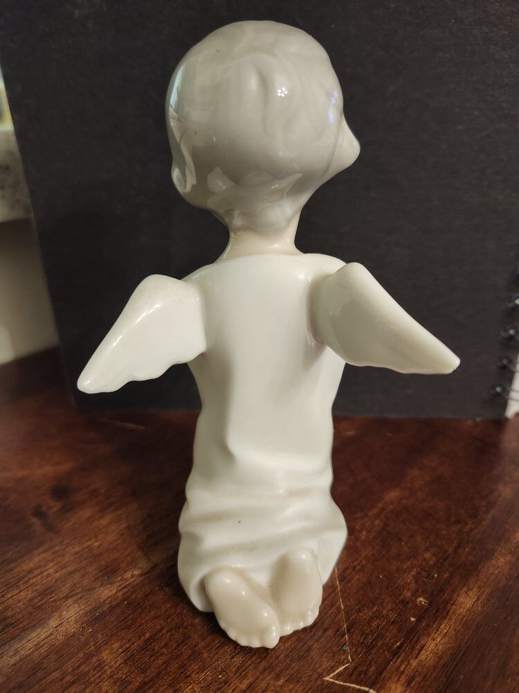 Vintage Lladro porcelain figurine of an angel praying. Gloss finish typical of Lladro's porcelain collectables. Part of a discontinued series. Cash only, serious inquiries only.