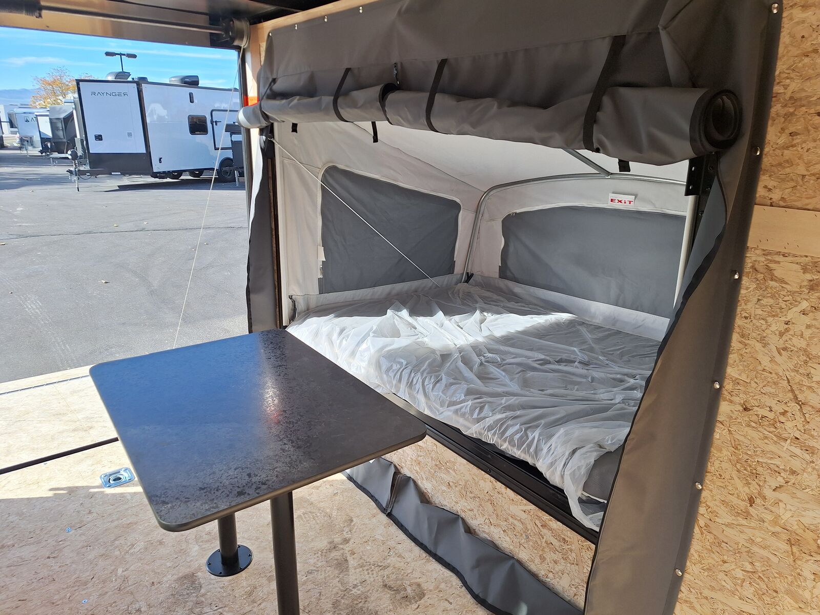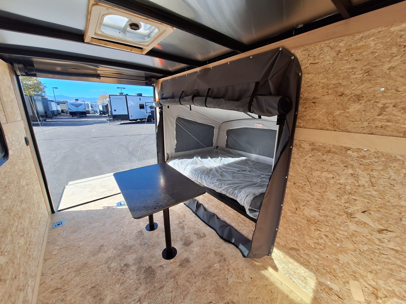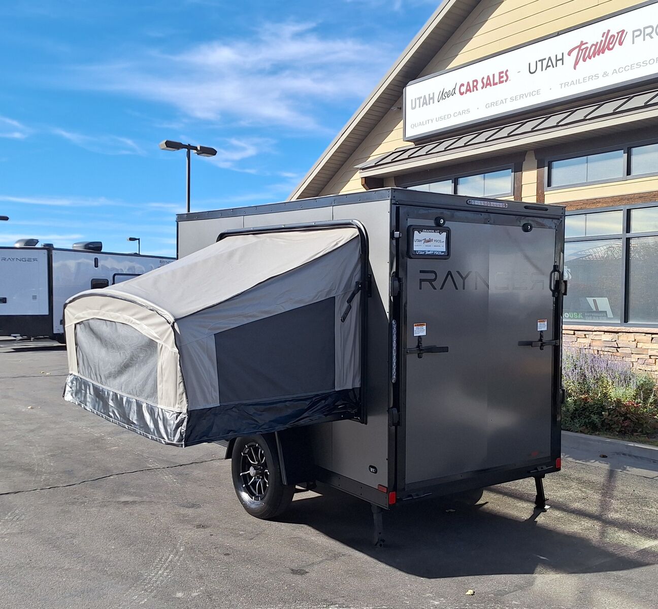 LIMITED TIME $109 A MONTH WITH ZERO DOWN WITH OUR SPECIAL LOCAL CREDIT UNION PARTNER!!! NO PRE-PAYMENT PENALTIES!!! NEW 5x10 RAYNGER Elevate Lyte/Mini MODEL!!! RAYNGER PREMIUM OFF ROAD TOY HAULER CAMPER!!! .080 PolyCor Exterior Aluminum Paneling!!! FOLD OUT/POP OUT TENT WITH MATTRESS!!! 68 Inch Rear Entry Height!!! 60 Inch Rear Entry Width!!! 73 Inch Interior Height!!! Vented Roof!! Storable Dinette Table!!! This Raynger comes at the demand of YOU our awesome customers! You asked and we listened!! Finally, a Raynger that can be pulled with almost ANY vehicle!!! Weighs only 1,500 pounds!! Can carry almost any ATV/Dirtbike or Motorcycle!! Great for E-Bikes, Paddle Boards, Mtn Bikes, Kayaks and MORE!!! Go Outdoors and Off Grid in Comfort that DOESN'T break the bank!! These are available in very limited quantities, grab one while you can!!!