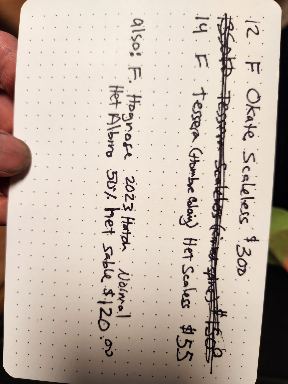 Venmobeautifull scaless and het scaleless baby corn snakes hatched June 2025. Prices start at $50 and go up to $300. Pictures of mother (prooven and entertaining offers) and father are included. Contact me for more information. Updated price list is in the pictures.
