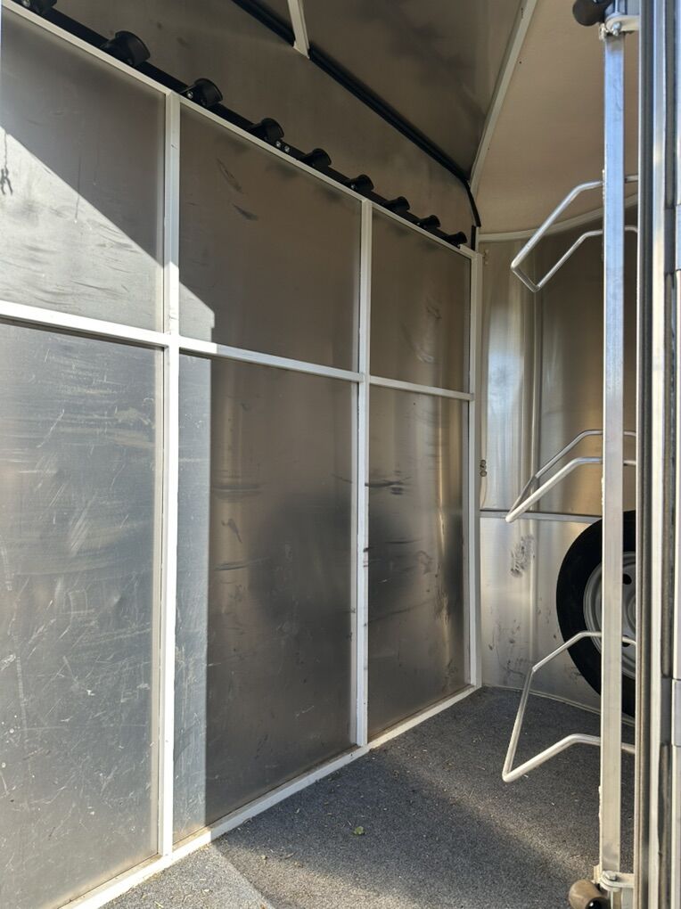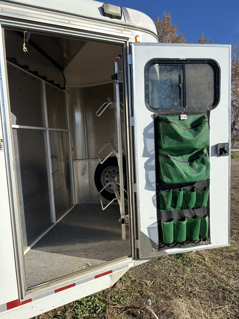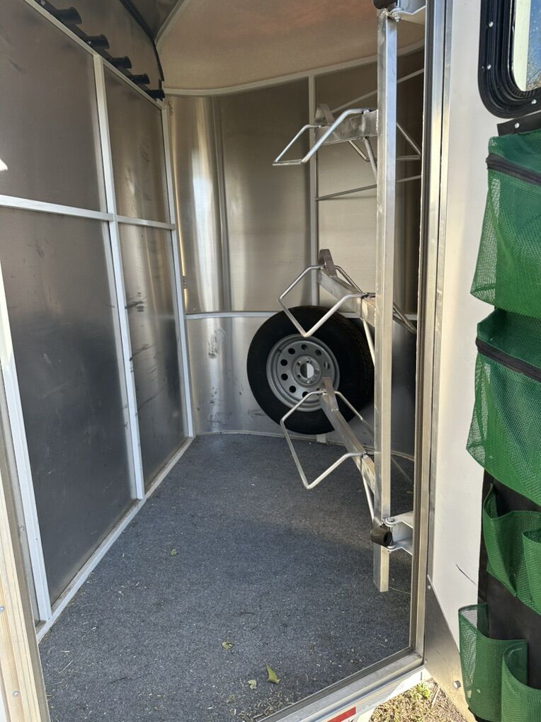 The front tack room includes • Swing out saddle rack • Blanket rod • Bridle hooks • Brush bag
