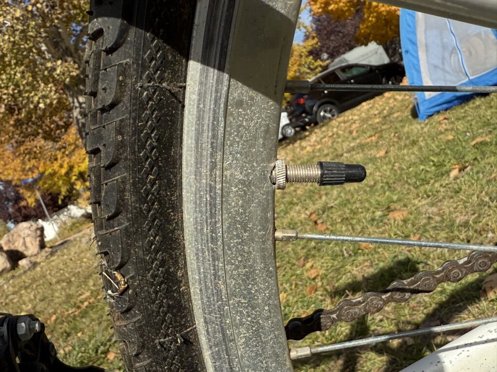 This is in good condition. One tire needs attention. The valve stems are a small size. I did not have an adapter to add air to test it. It may need a new tube or patch.