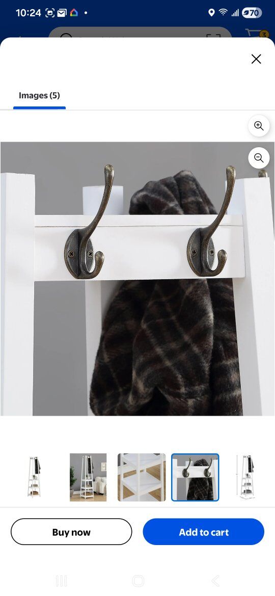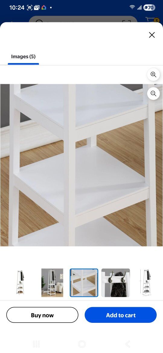 Heavy Duty Wooden Coat Rack White with 8 Hooks 3 Lower Shelfs 6 feet Tall, 17 in Wide at bottom See Attached Photos