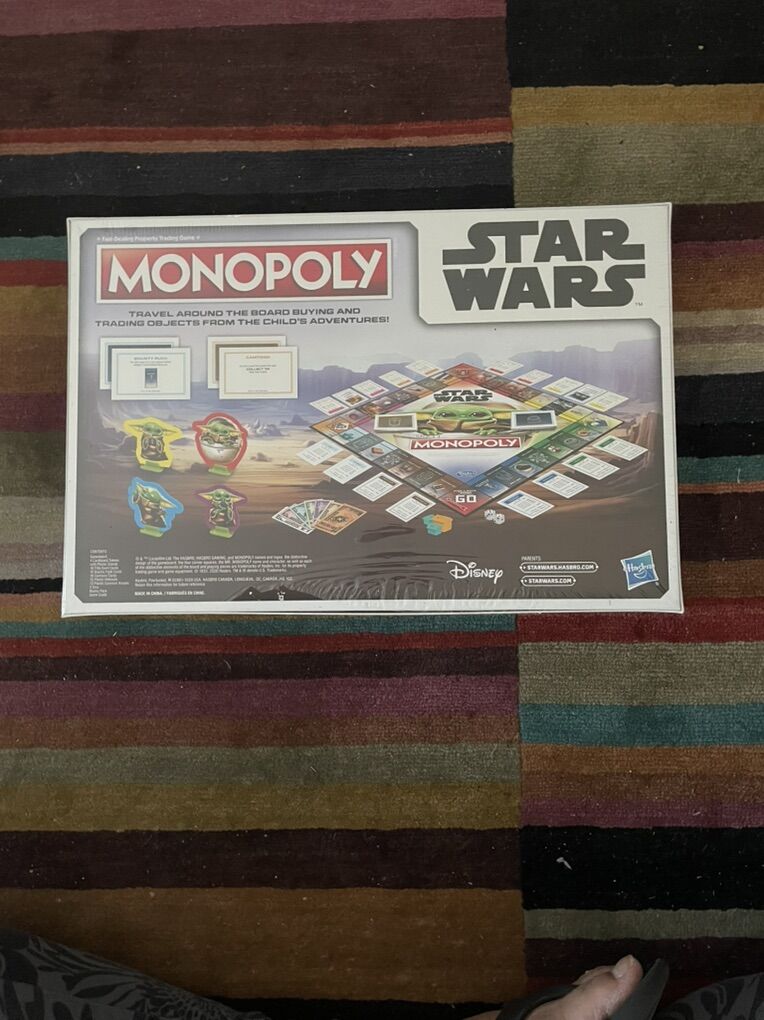 INSPIRED BY THE TV SERIES: This Star Wars edition of the Monopoly board game is inspired by the The Mandalorian live-action TV series on Disney Plus THE CHILD TOKENS: Play as The Child (or affectionately known as Baby Yoda by fans) in different poses such as eating a frog, using the force, drinking a cup of broth, and sitting in the Hoverpram HIDEOUTS AND HIDEAWAYS: Players travel around the board buying and trading objects from The Child's adventures. Buy Hideouts and pay to upgrade to Common Houses THEMED GAMEBOARD: The gameboard features places and objects The Mandalorian fans will recognize such as a Cup of Broth, a Frog, Tracking FOB, Razor Crest Cockpit, and Razor Crest Storage Bay FOR THE CHILD FANS: This board game for kids ages 8 and up makes a great gift for Star Wars The Mandalorian fans, and would make a nice addition to a Star Wars fan's toy collection THE CHILD TOKENS: Play as The Child (or affectionately known as Baby Yoda by fans) in different poses such as eating a frog, using the force, drinking a cup of broth, and sitting in the Hover pram\