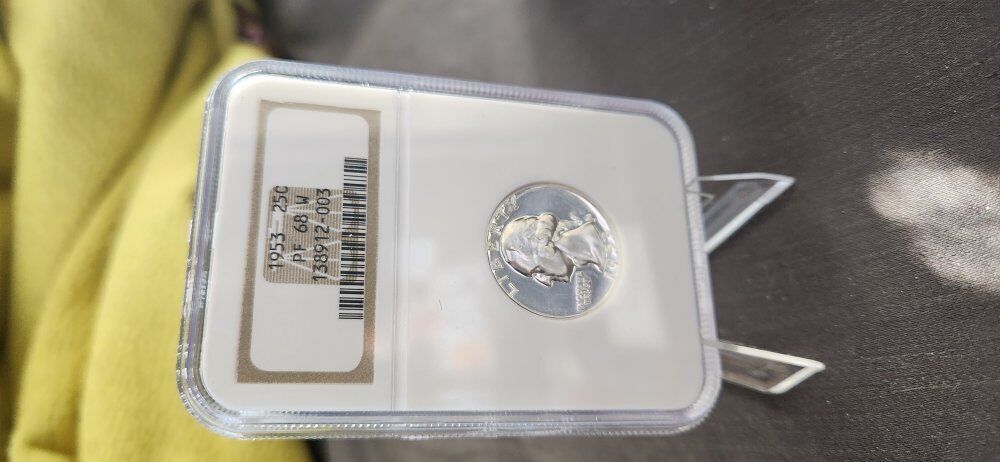 Venmo1953 Washington Quarter .25 Proof State Graded PF68 W! The 1953 is one of the most collectible mintage of the 1941-1964 Washington quarter! Very low mintage. A great piece of US nusmismatic history. Well preserved and graded uncirculated Proof State PF68 W by NGC. Very beautiful shiny white. NGC certification number 138912-003. ThIs coin is pretty much flawless with a brilliant finish. The case is a great presentation! NGC valued $175. Comes with the case stand. $115 obo. KSL Messenger or txt. 8016414771 KSL messenger is best.