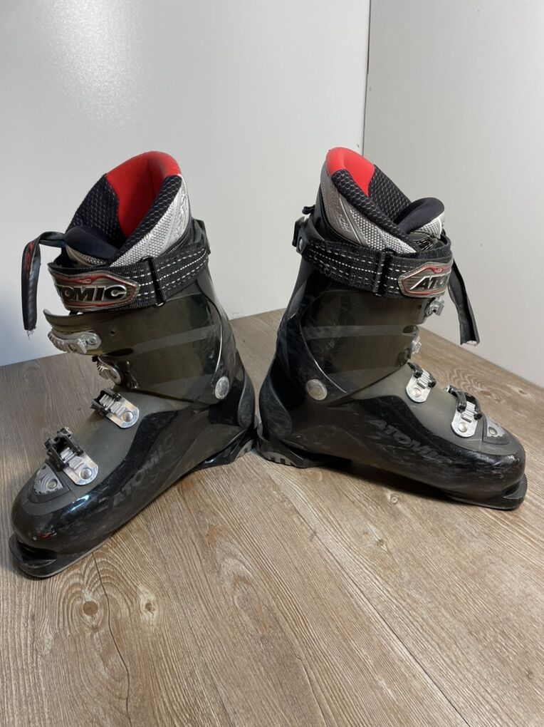 Here we have a good pair of Atomic B-Tech 120 ski boots. Size 27.5 and in good condition. The pull on straps on front are broken on one side. See pics. Call or Text